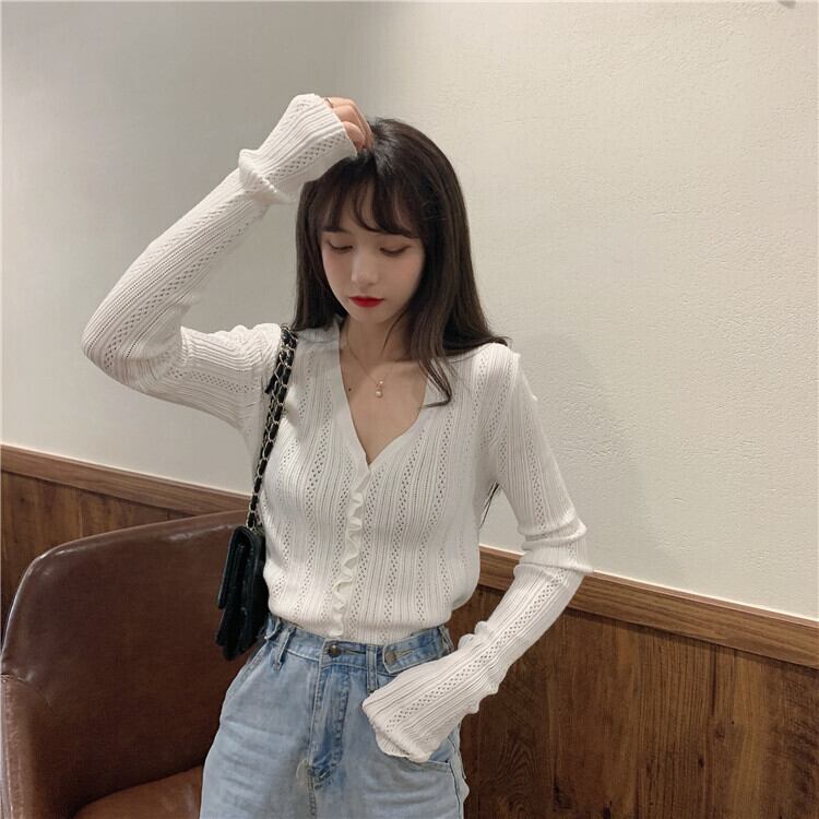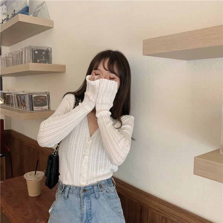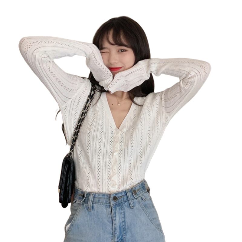 2020年春夏新気質キクラゲVネック長袖ニットカーディガンレディース薄手の日焼け止めトップ 1号婦人76981185173