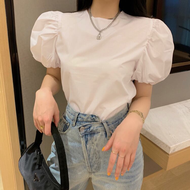 2020年夏の新しい香港スタイルのレトロなバブルスリーブ半袖シャツ女性ウエスタンスタイルの薄いスーパーフェアリースイートシフォントップ 1号婦人43058528852