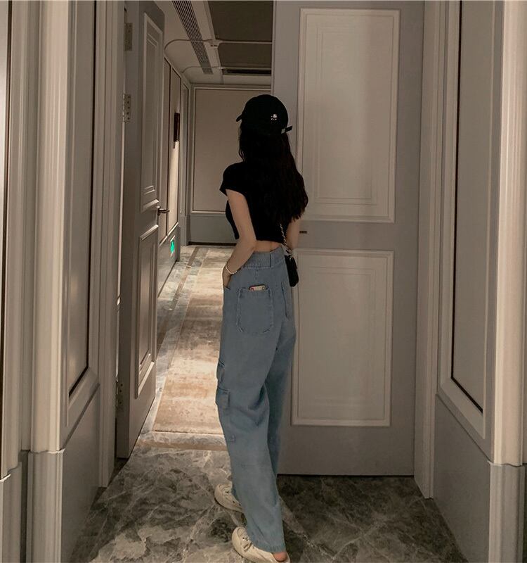 2020年春夏新バージョンのヒョナスタイルハイウエストパンツオールマッチ薄手のワイドレッグルーズツーリングジーンズ女性 1号婦人27278425770