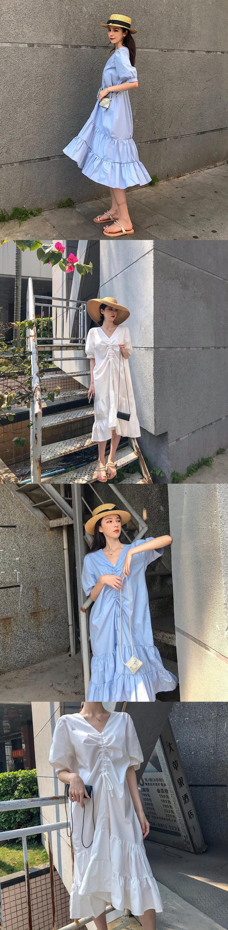 色:青い服,白いドレス