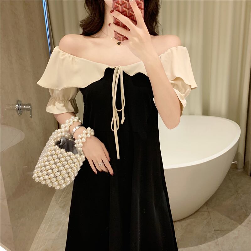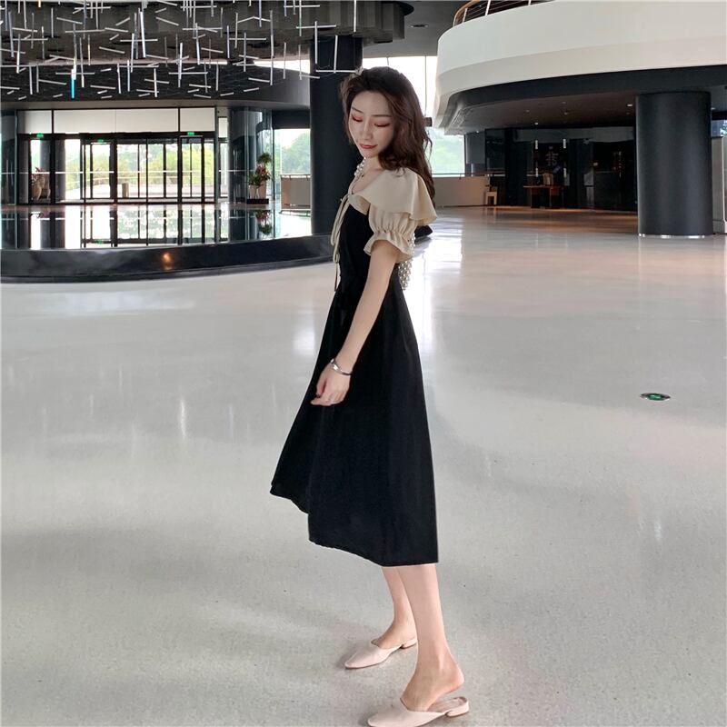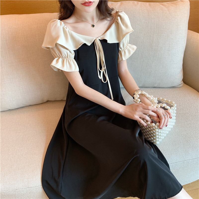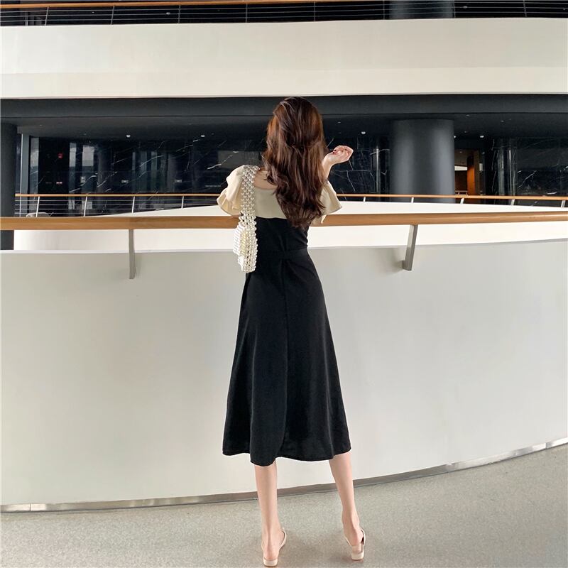 2020年春夏新作スーパーフェアリーフレンチニッチベルフラワーミドル丈スカートスーパーフェアリーカラーマッチング気質半袖ワンピース女性 1号婦人56896556924