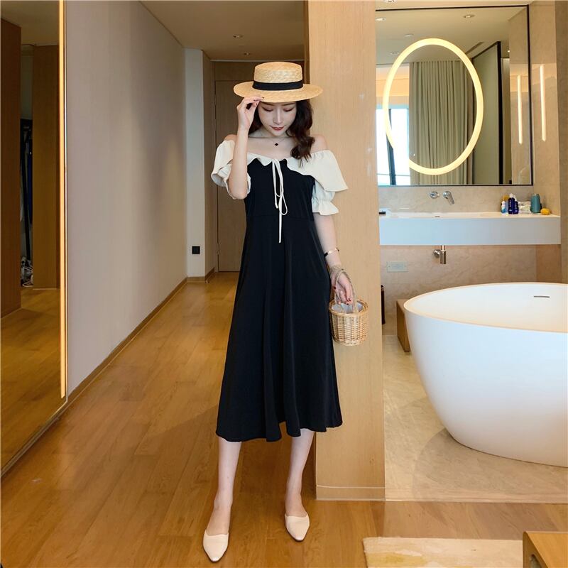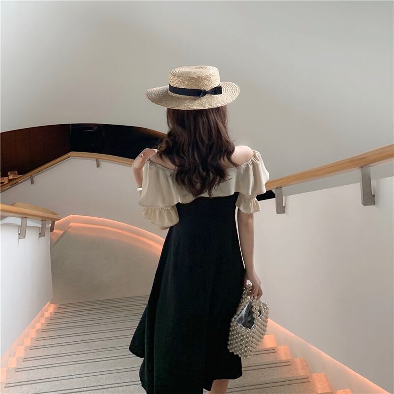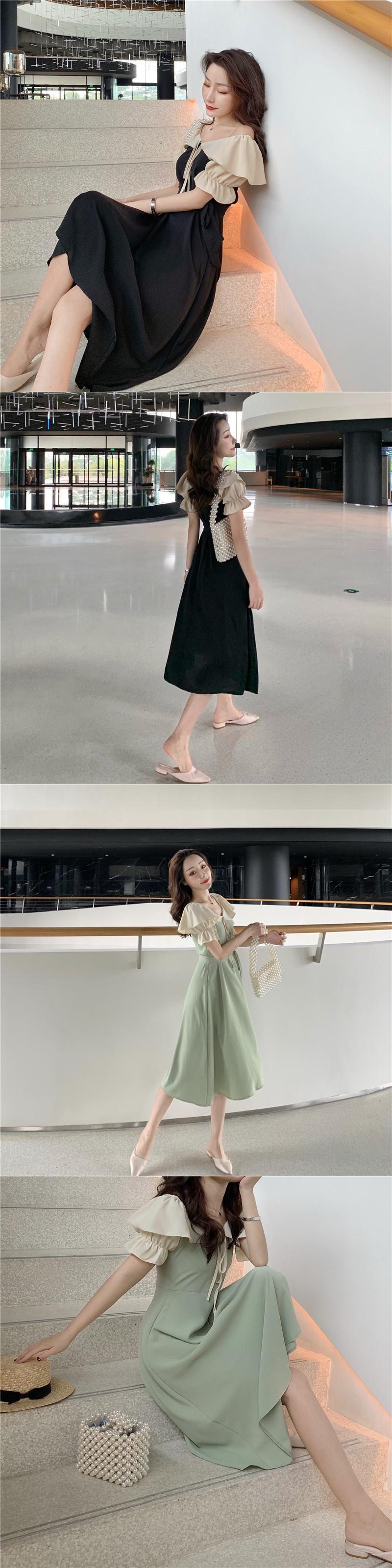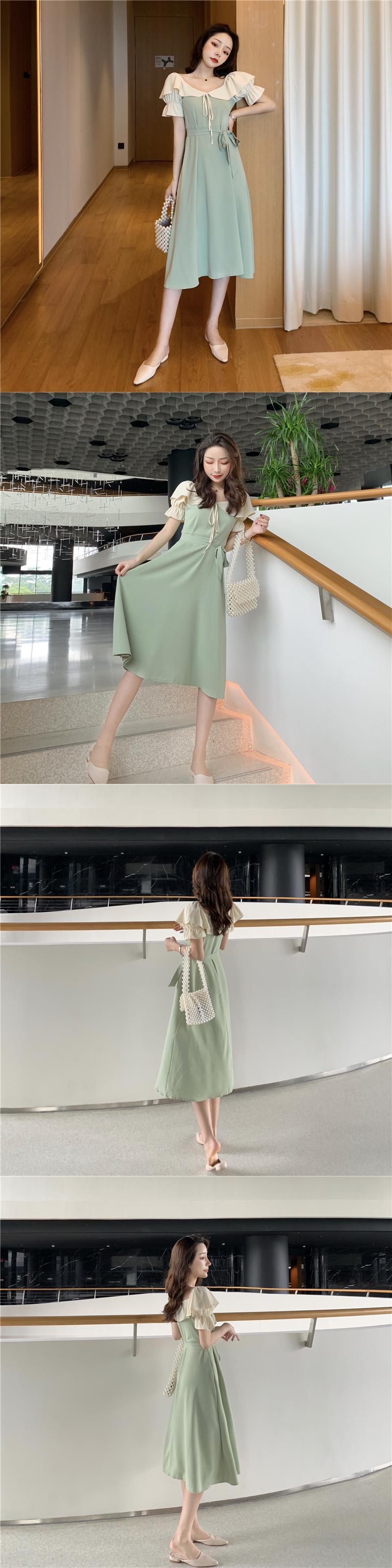 2020年春夏新作スーパーフェアリーフレンチニッチベルフラワーミドル丈スカートスーパーフェアリーカラーマッチング気質半袖ワンピース女性 1号婦人56896556924