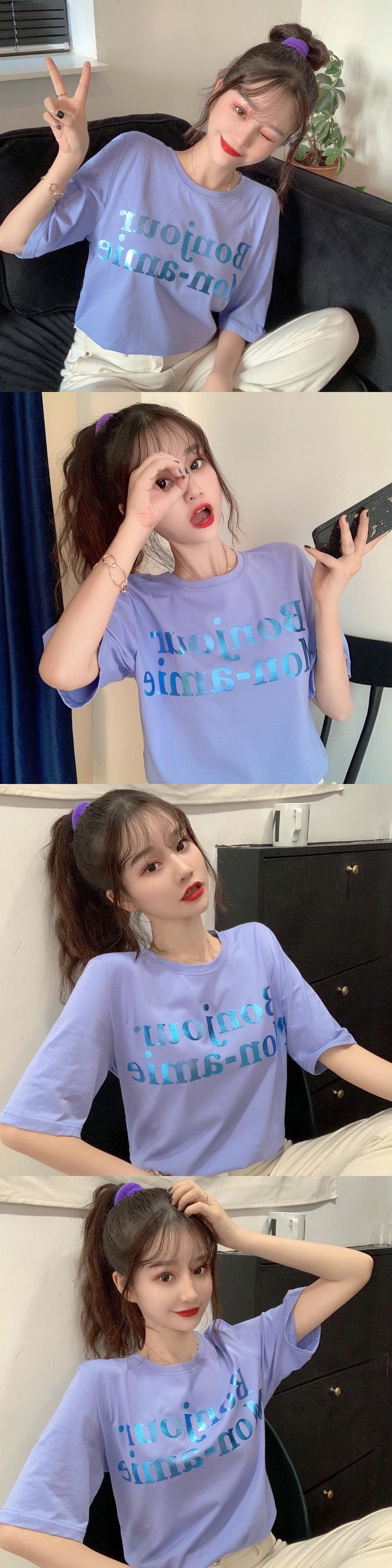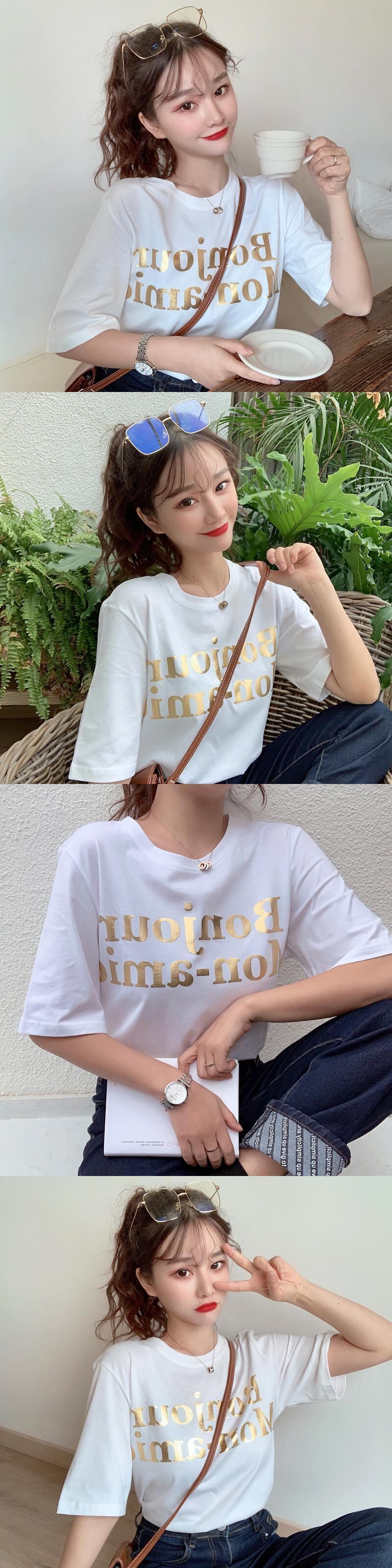 2020年春新バージョンルーズワイルドレタープリント半袖Tシャツ女子学生スリムボトミングトップ 1号婦人14432509147
