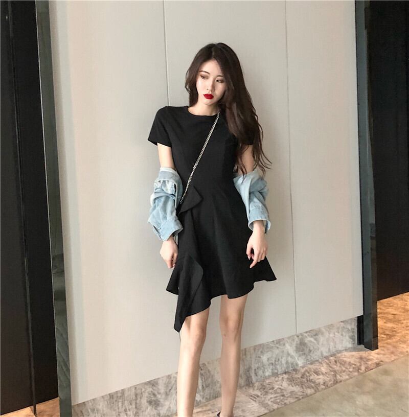 2020年春夏の新作気質は薄いフリルフィッシュテールスカートファッション半袖スリムハイウエストドレス女性 1号婦人10037990390