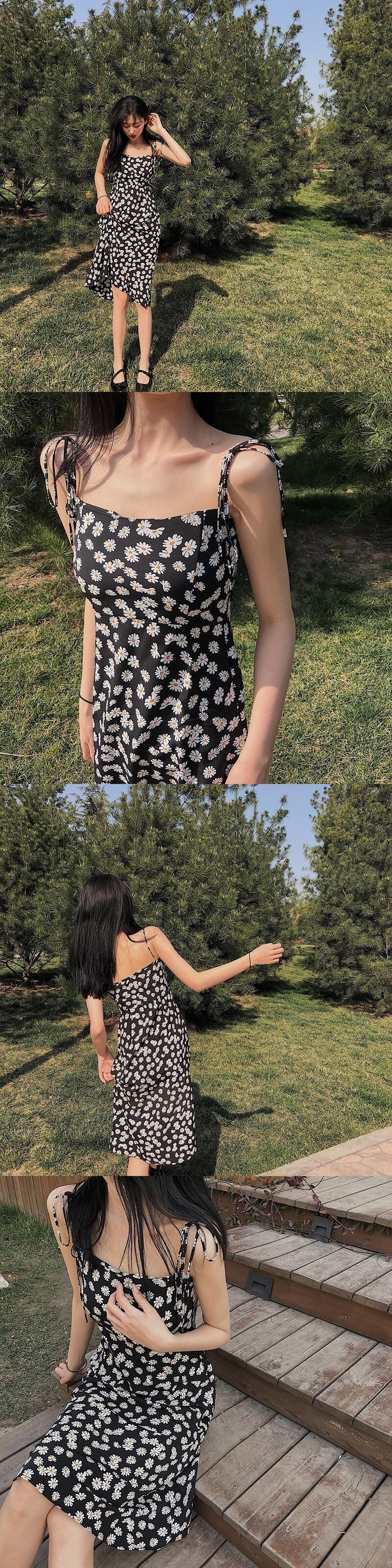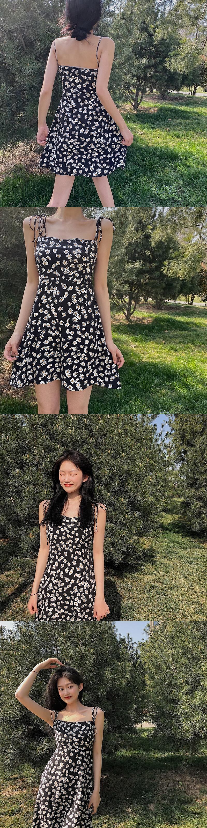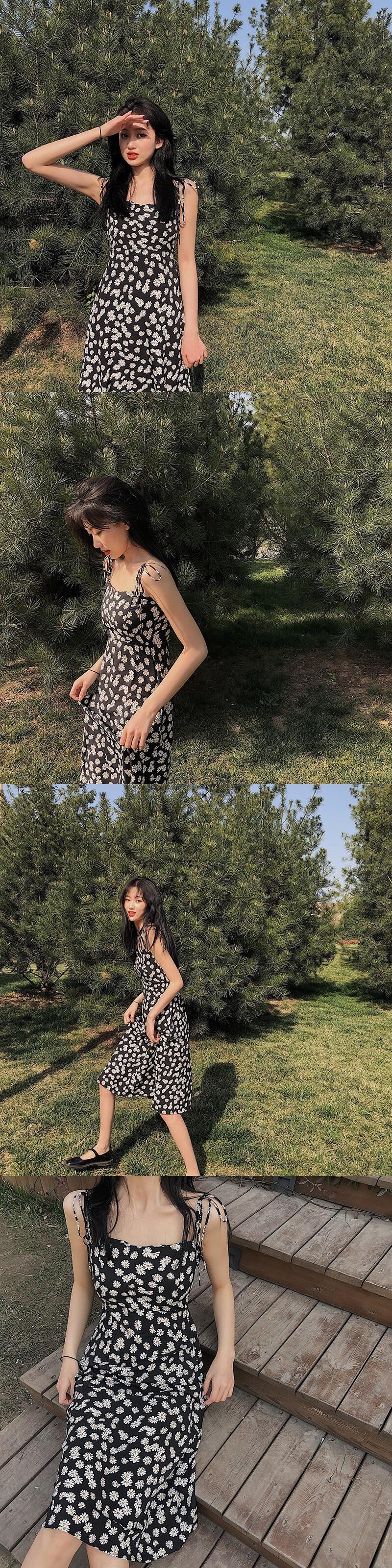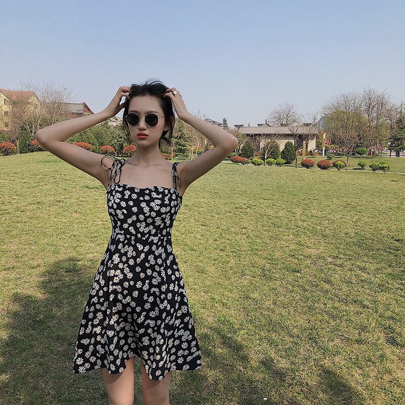 2020年夏の新しいフレンチニッチデイジーレトロサスペンダースカートミドル丈ハイウエストスリムドレス 1号婦人65759661383