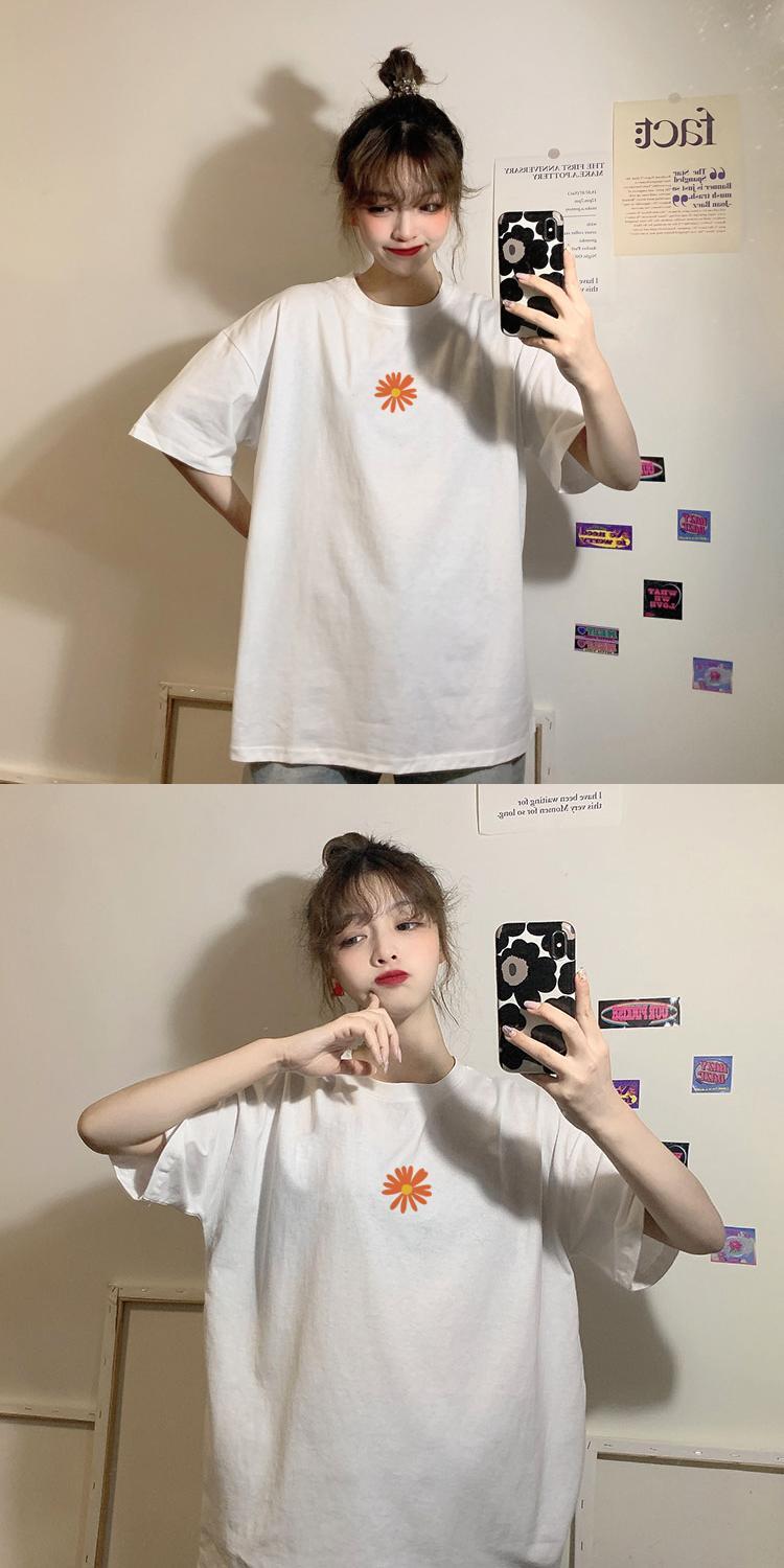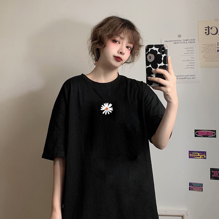 白い半袖Tシャツ女性2020新しい婦人服小さなデイジーブラックTシャツイントレンドルーズトップ学生トレンド 1号婦人76525402259