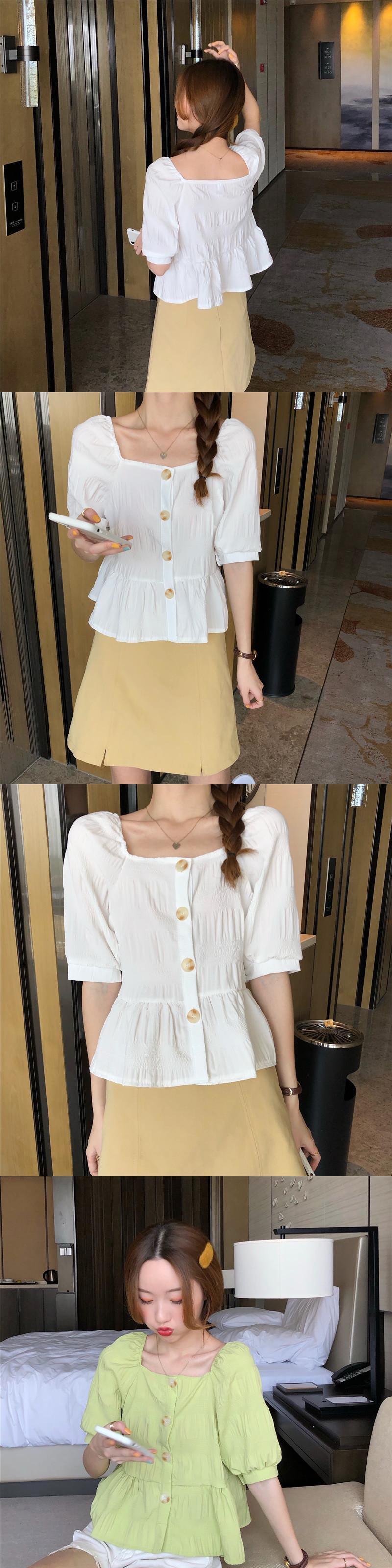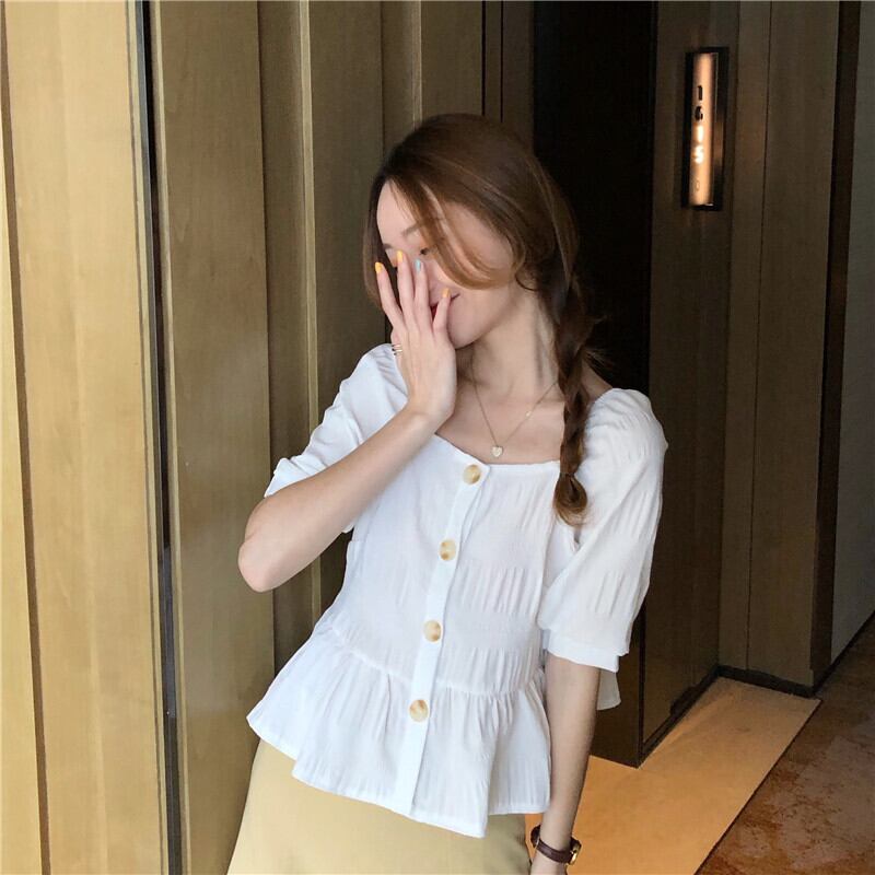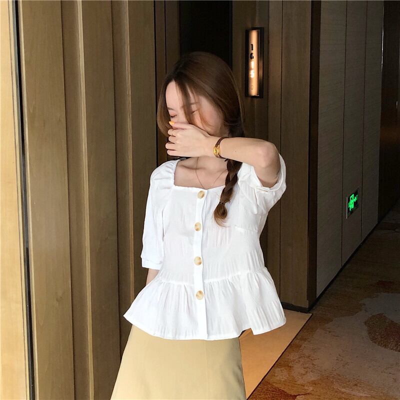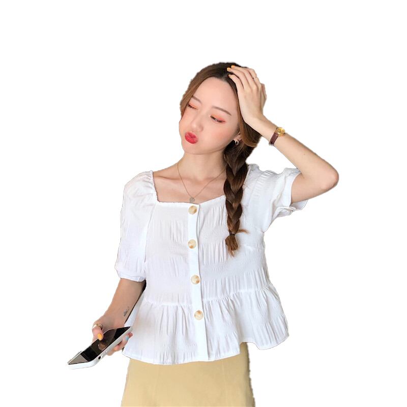 センスニッチスクエアカラーレディースシャツ夏の新しいフランスの半袖白いシャツイン風蓮の葉トップ 1号婦人56672236130
