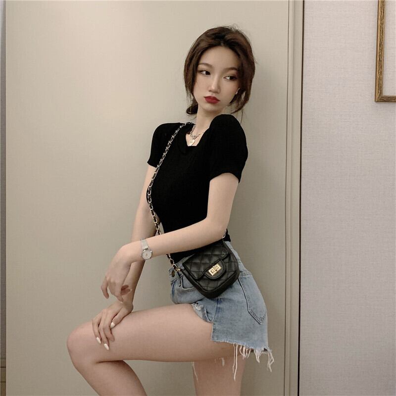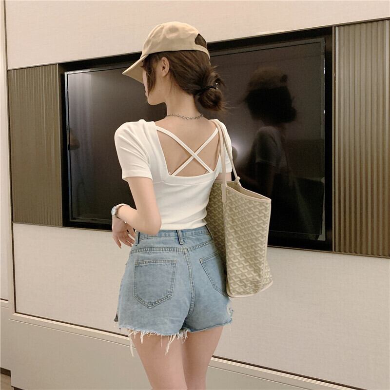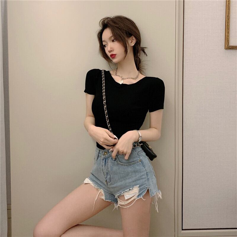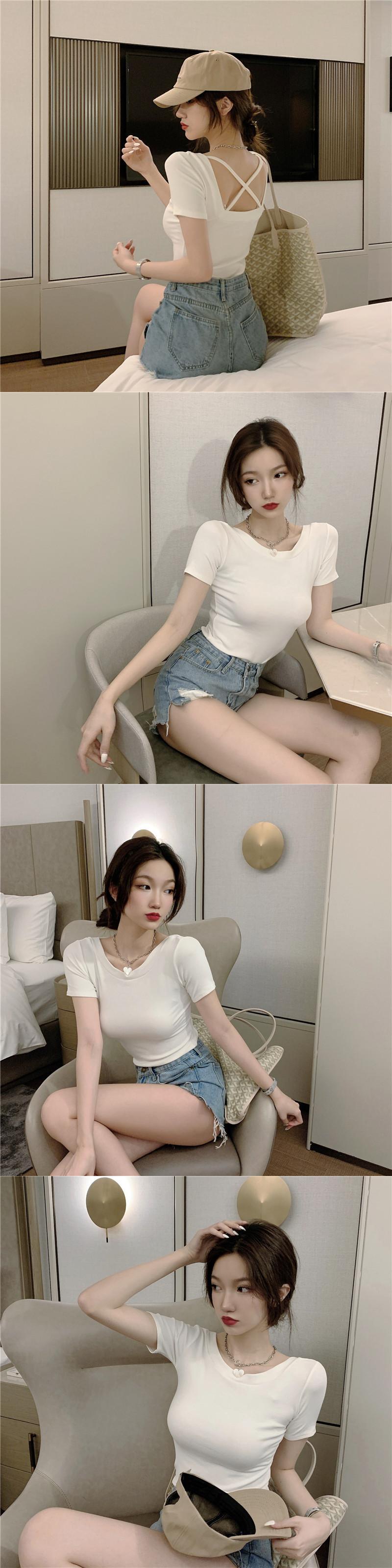 黒のボトミングシャツの女性2020年夏の新しいセクシーなバッククロス中空スリムスリム半袖Tシャツトップ 1号婦人46491180154