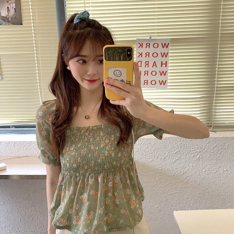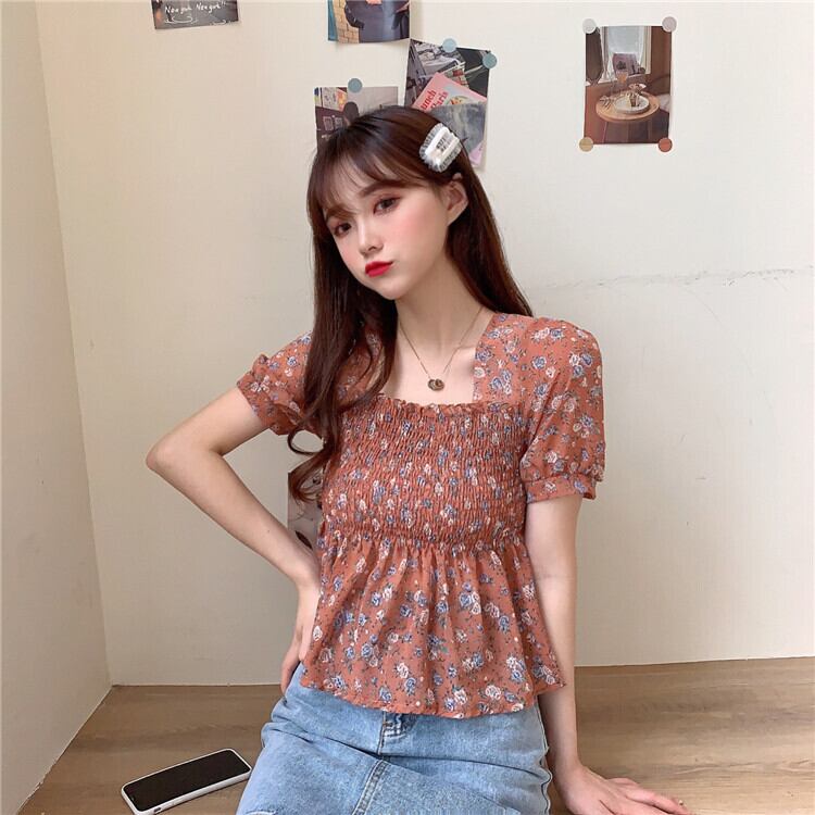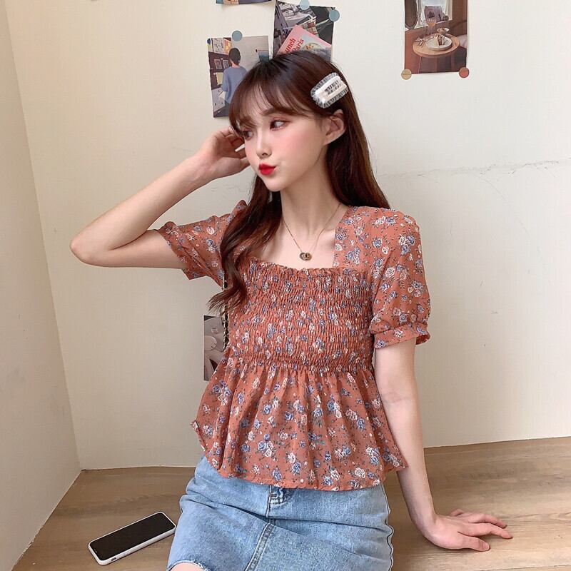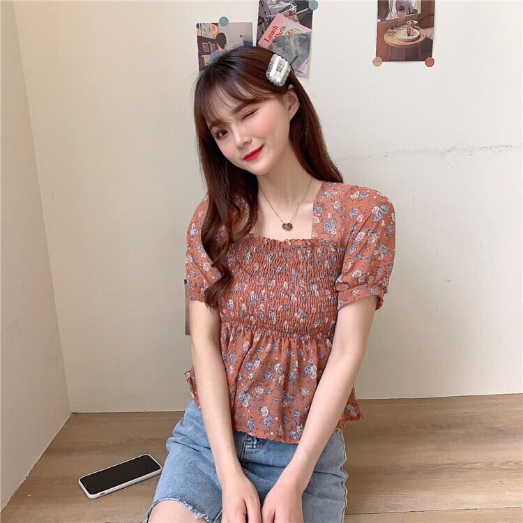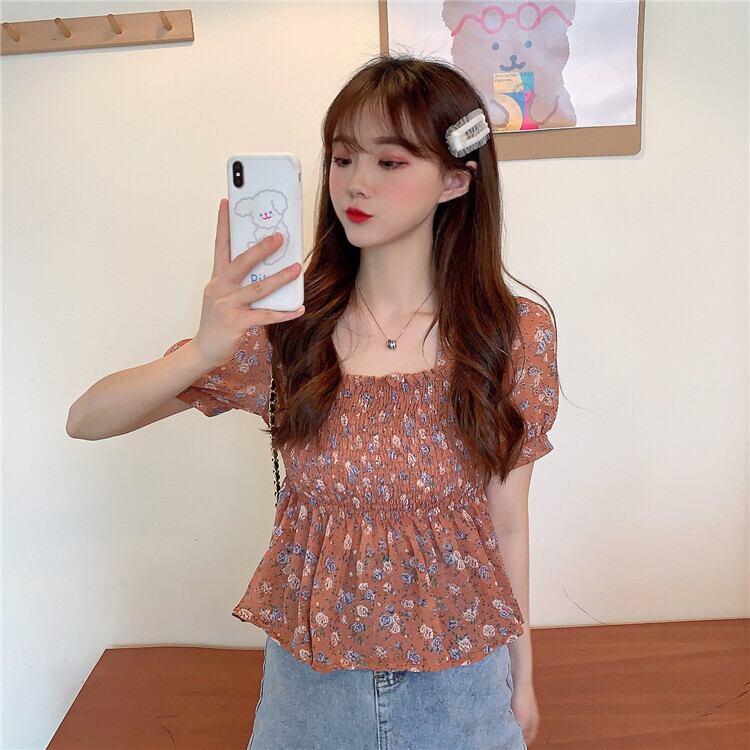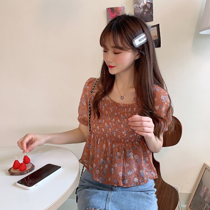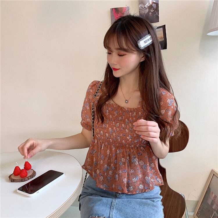 シャツレディース2020年夏新バージョンの香港フレーバーレトロスウィートスモールフローラルウエストスリミングシフォン半袖トップス 1号婦人45523991249