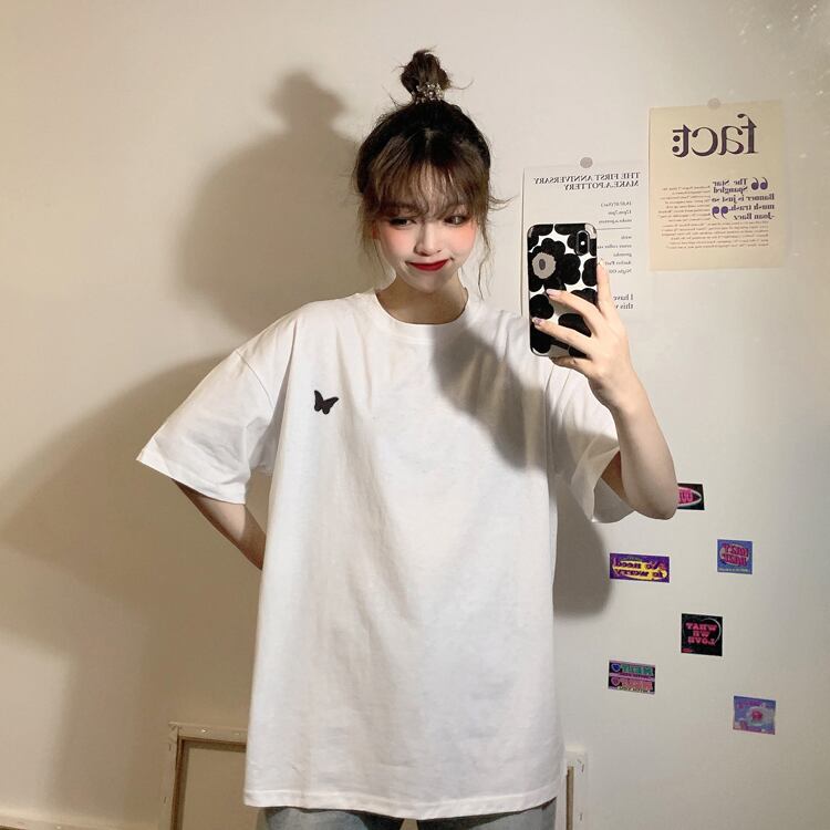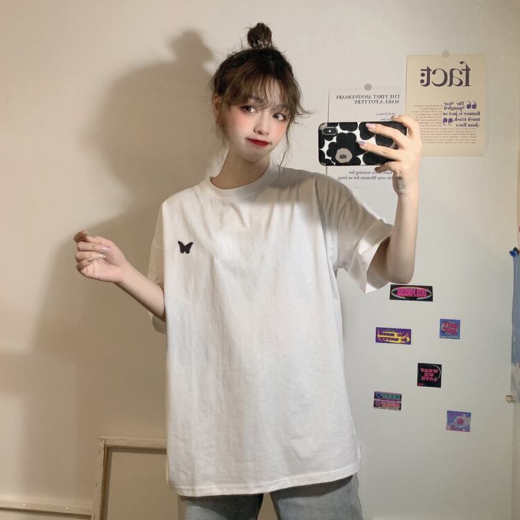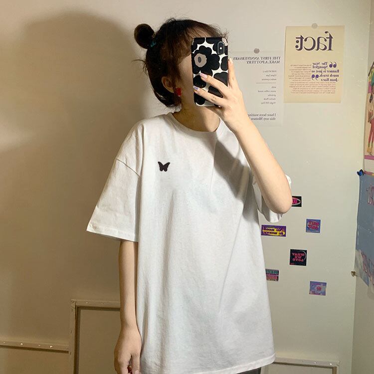 2020年夏の新バージョンのネットレッドファッションバタフライ刺繡ルーズブラック半袖Tシャツレディースインナートップ 1号婦人12439929616