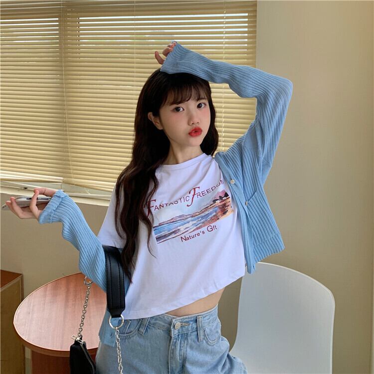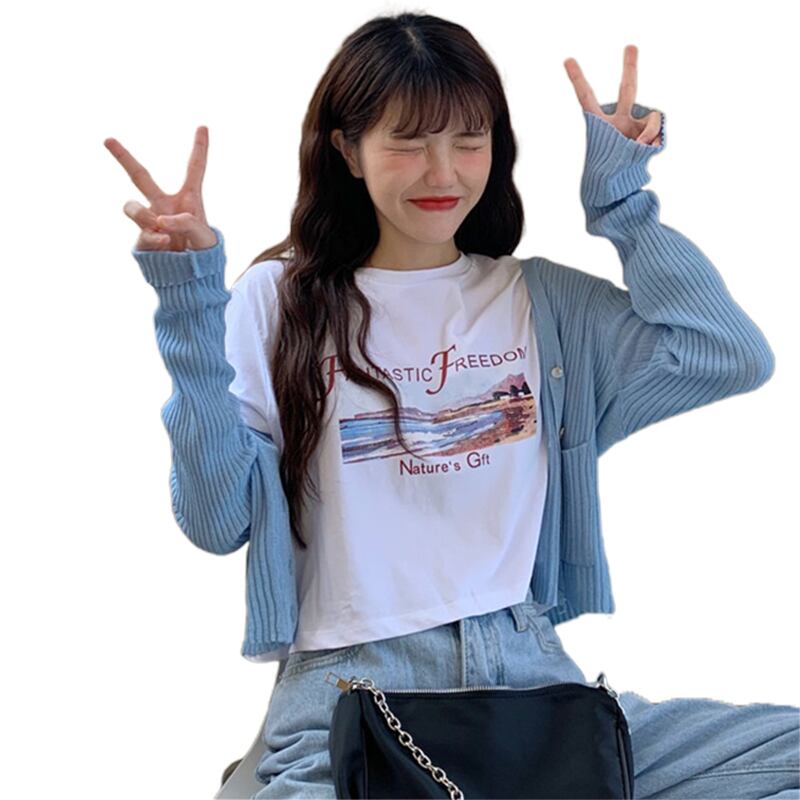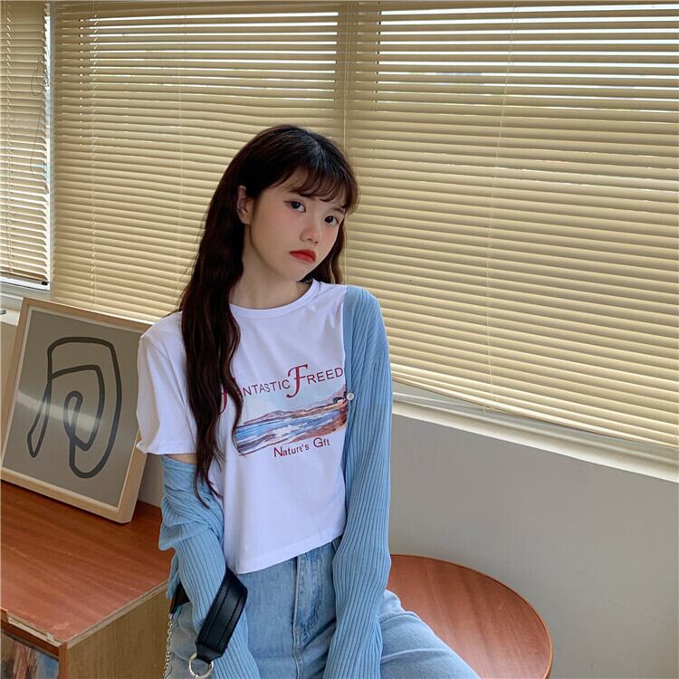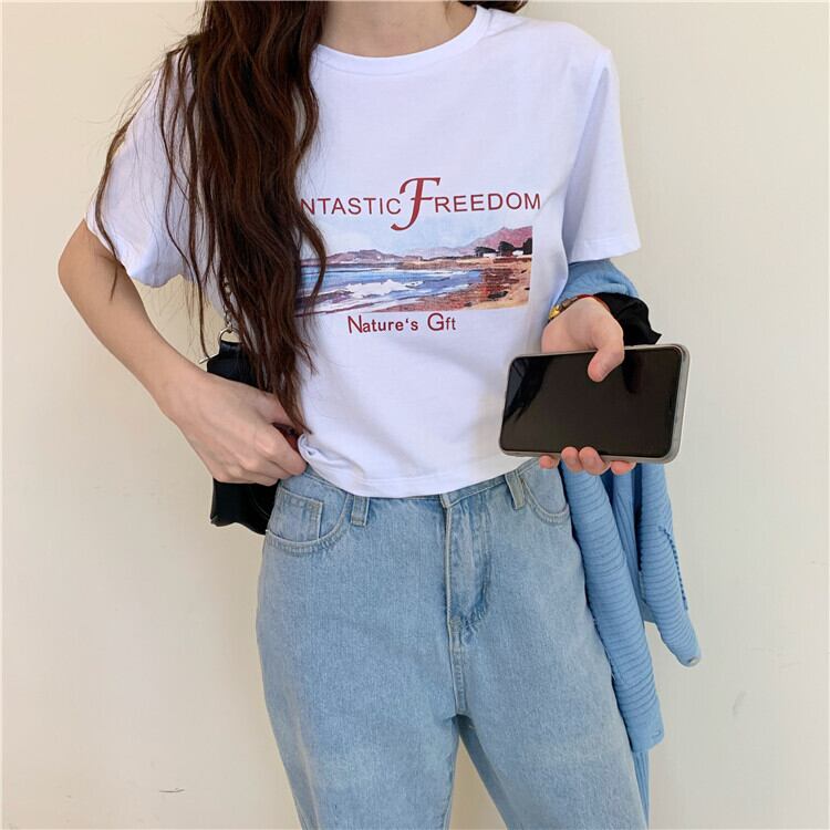 ネットレッドファッションプリント半袖トップウーマン2020ニューバージョンのワイルドショートホワイトTシャツインウエスタンスタイル 1号婦人380058803