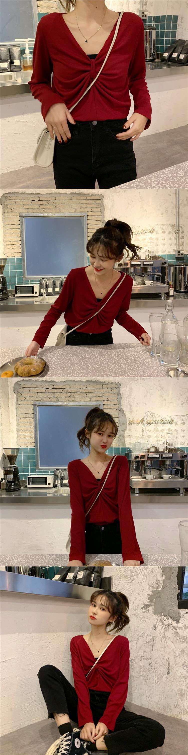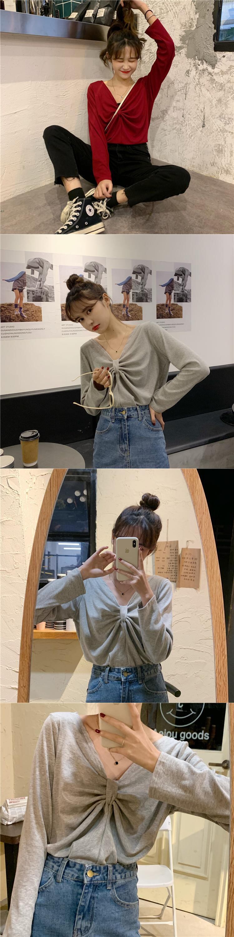 2020年夏の新香港スタイルネットレッドトップスルーズVネックTシャツ長袖インスーパーファイヤーグレーTシャツ女性トレンド 1号婦人13376831212