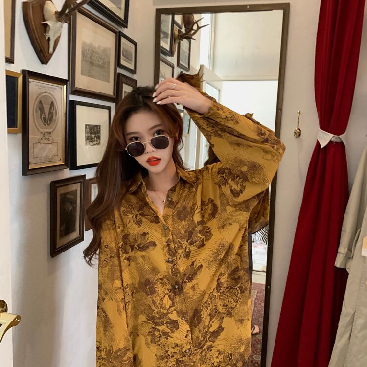香港スタイルのレトロなデザインセンスニッチルーズシャツレディースサマードレス2020新しいミドル丈ウエスタンスタイルアッパー服 1号婦人72105691378