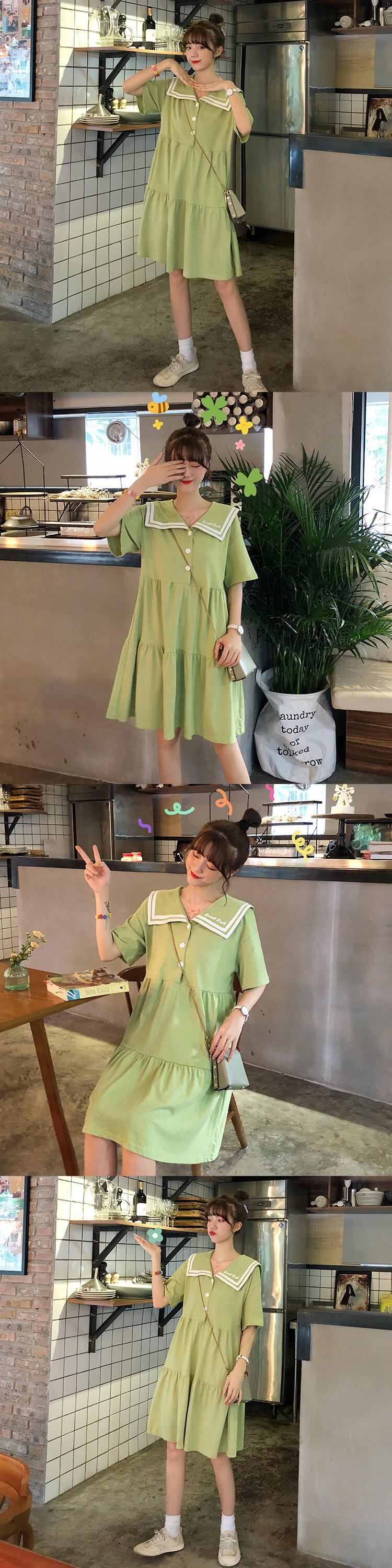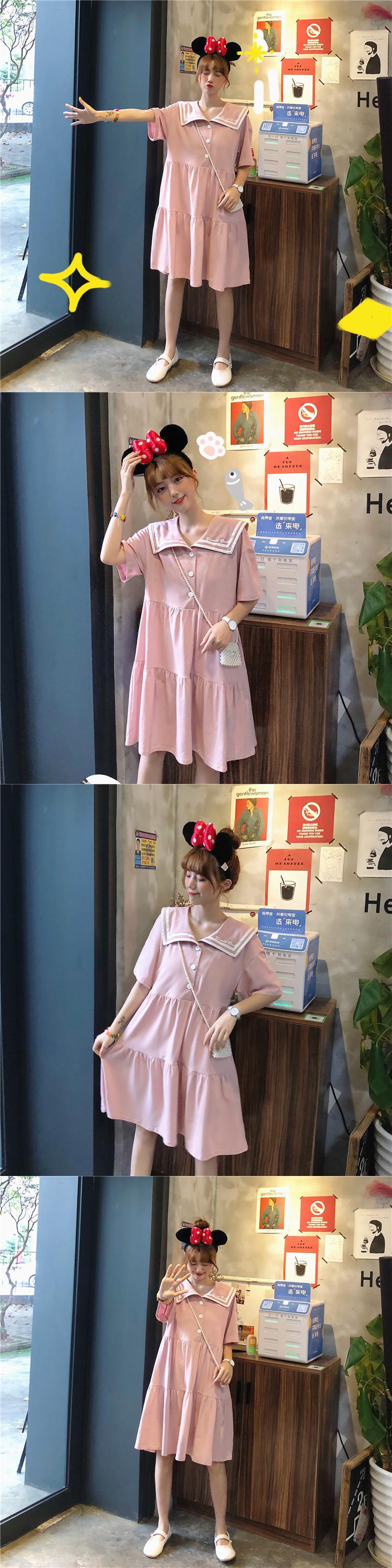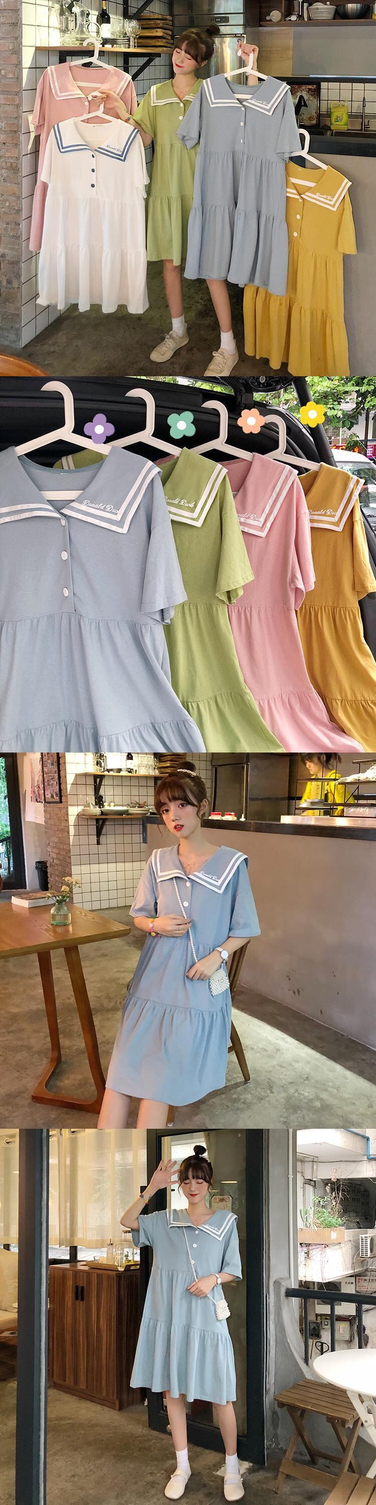 2020年夏の新作カレッジスタイルルーズでシンフレンチスタイルのファッション半袖ドレス女子学生 1号婦人50456488084