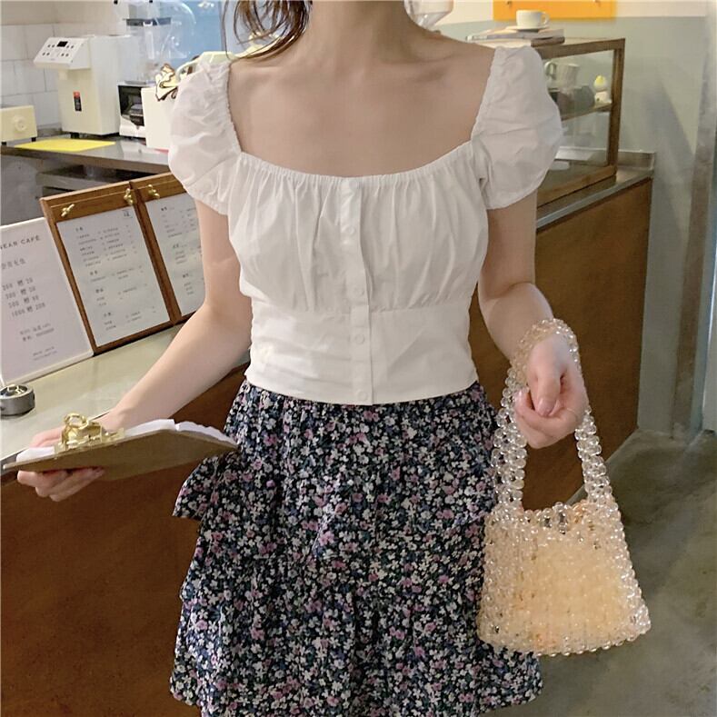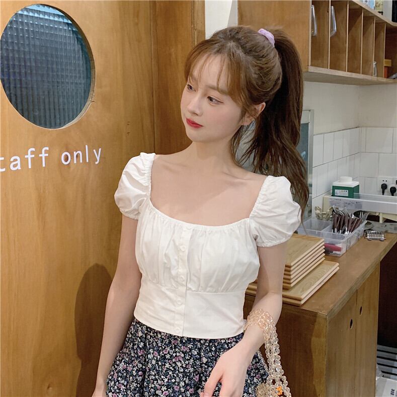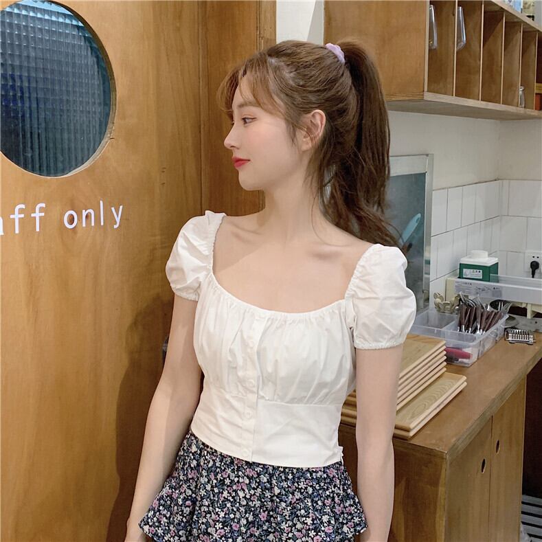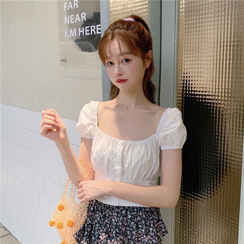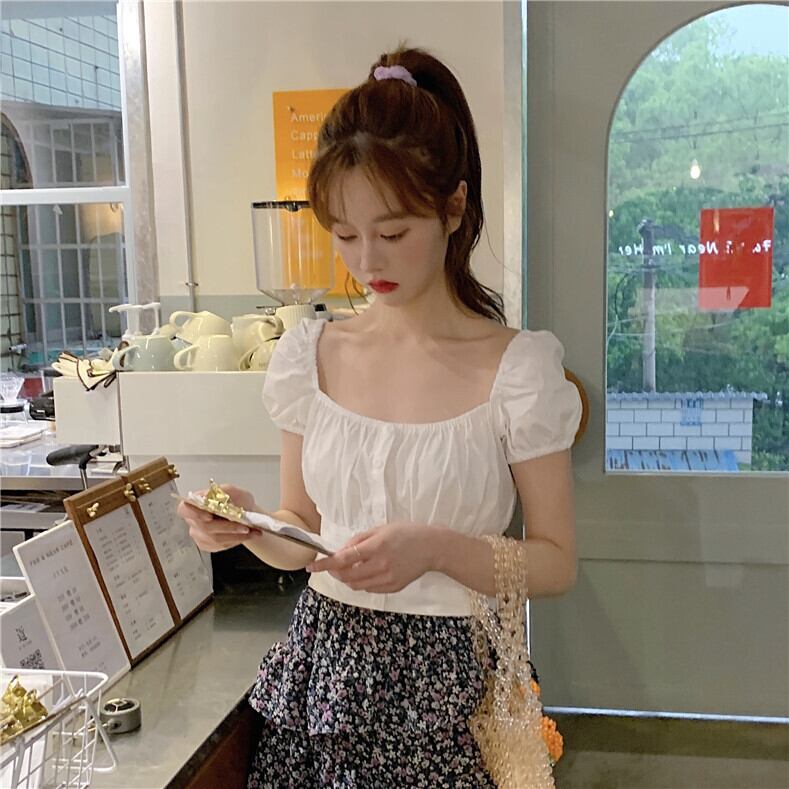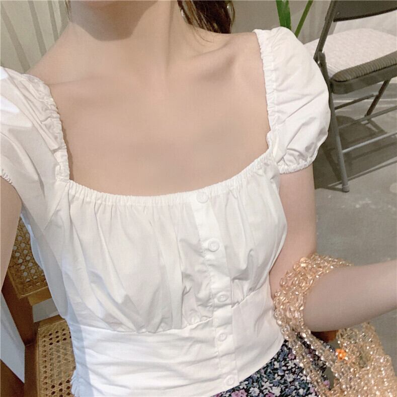 2020年夏の新デザインセンスニッチたくらみ服スクエアネックバブル半袖ウエスト薄手の白いシャツ女性 1号婦人26137596106