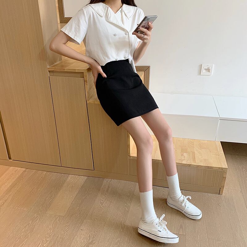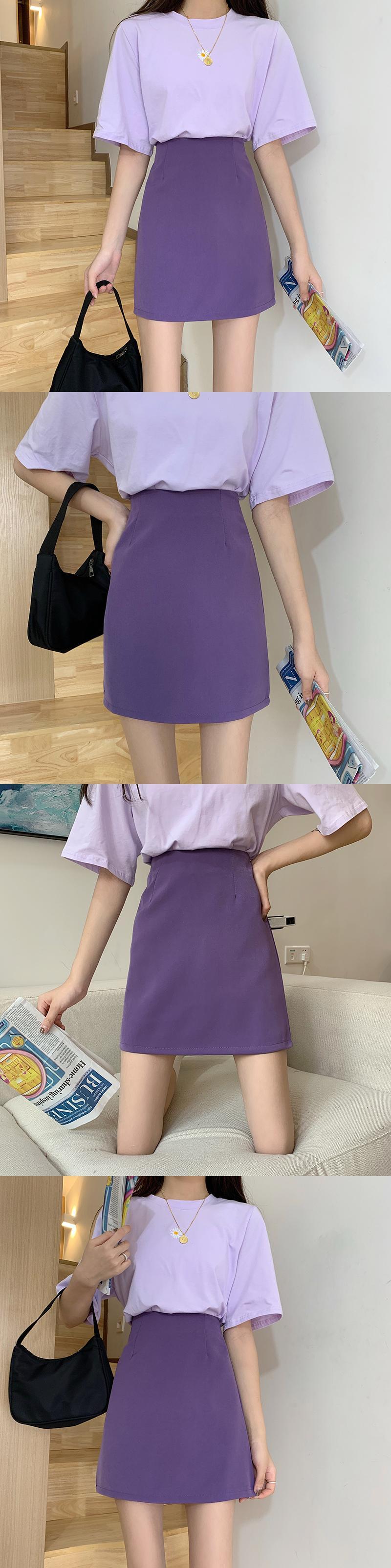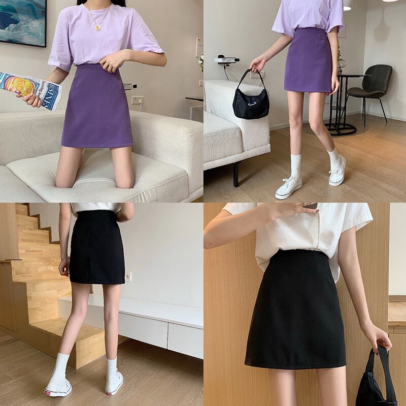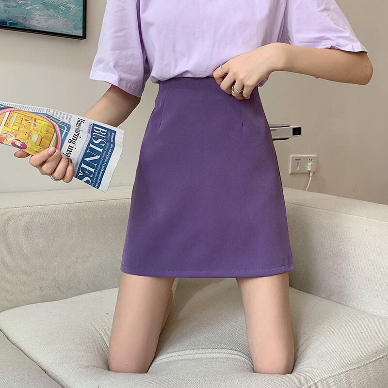 ネットレッドハイウエストスリムスカート2020夏新作レディースレトロパープルAラインスカートオールマッチショートスカート 1号婦人1096223767