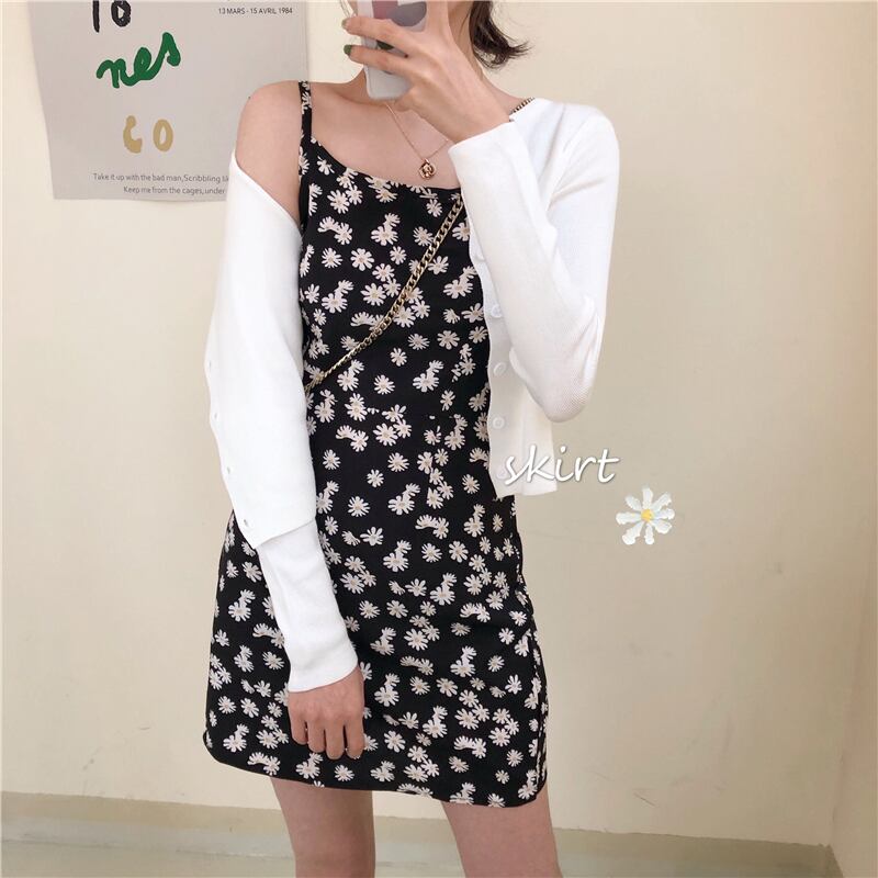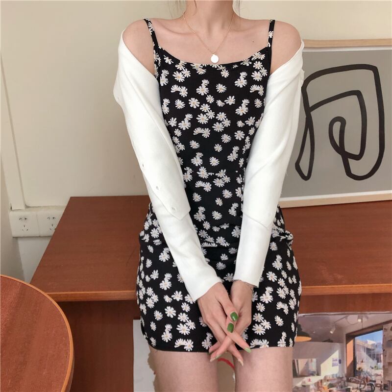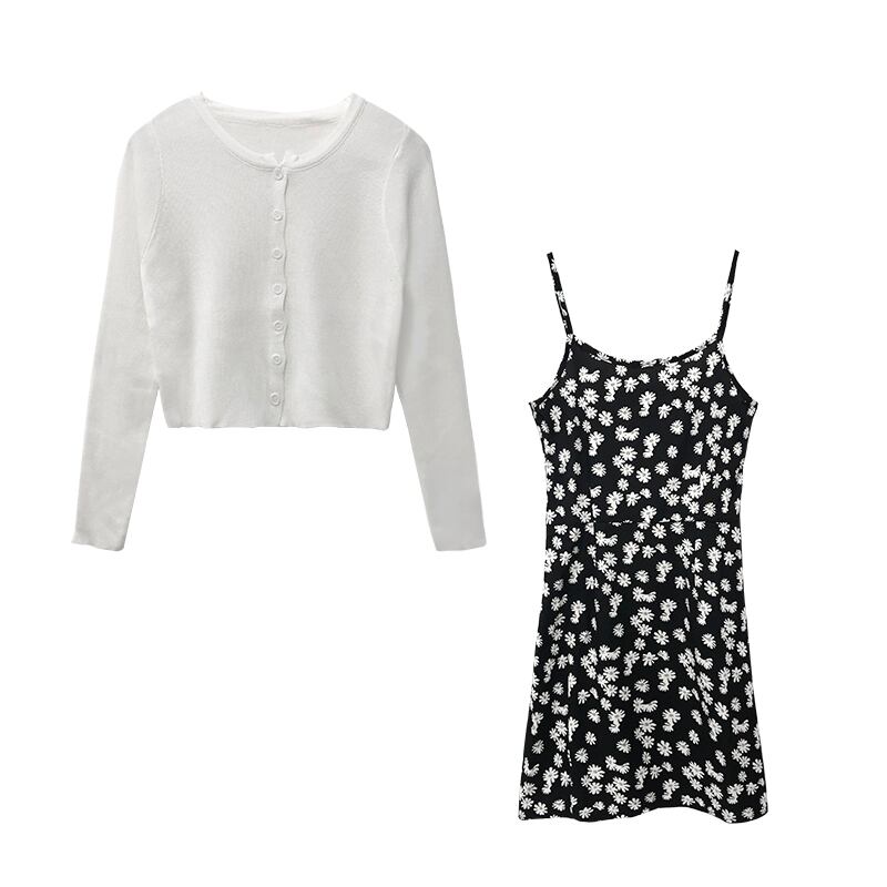 スーツ2020新しい女性のサマードレス小さなデイジーフローラルスリングドレス+白い日焼け止めカーディガンツーピーススーツ 1号婦人95258932744