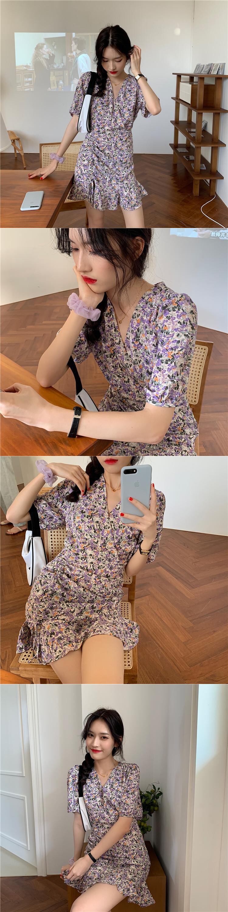 紫のショートスカート女性2020年夏新しい気質は薄い初恋花柄スカートは甘くて塩の半袖ドレストレンド 1号婦人69180606311