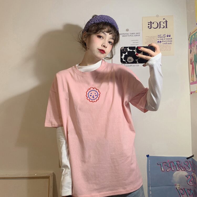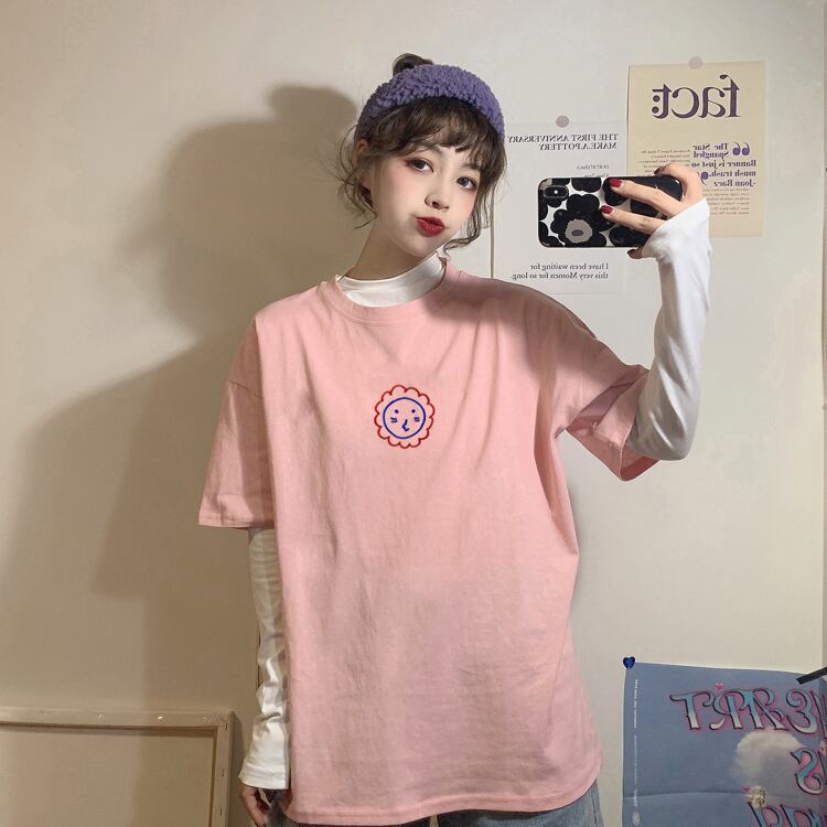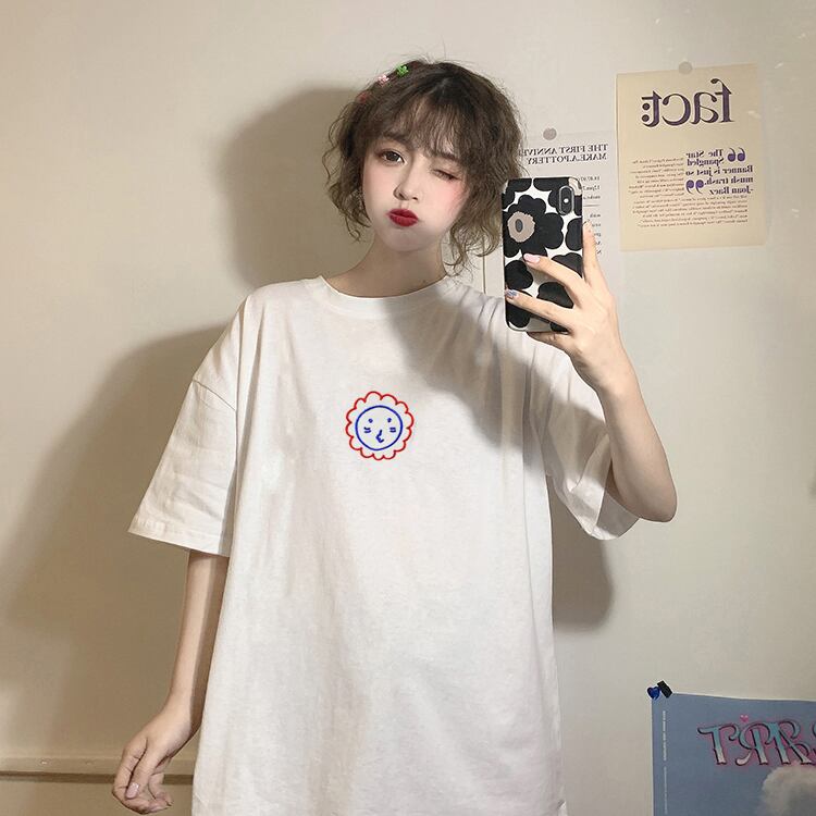純綿半袖2020年新夏ホワイトネットレッドTシャツ女性インスーパーファイア学生香港風刺繡ルーズスタイルタイド 1号婦人4614803302