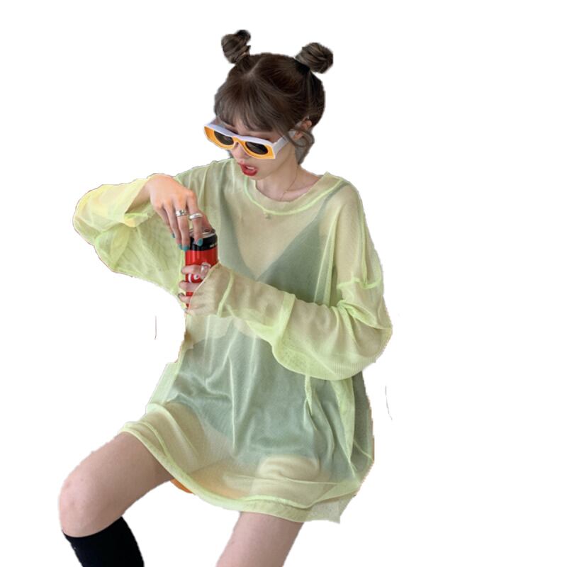 メッシュパースペクティブ薄手の長袖日焼け止めTシャツ女性の2020年夏の新しいルーズホワイト長袖上着トレンド 1号婦人80393889847