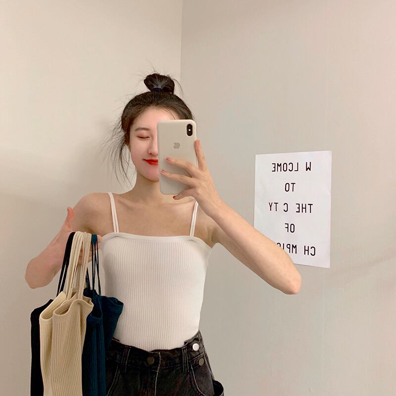 白いボトミングシャツセクシーなブラウス、黒い痩身ニットの小さなキャミソール、夏の女性は外でボトミングを着用 1号婦人3938117491