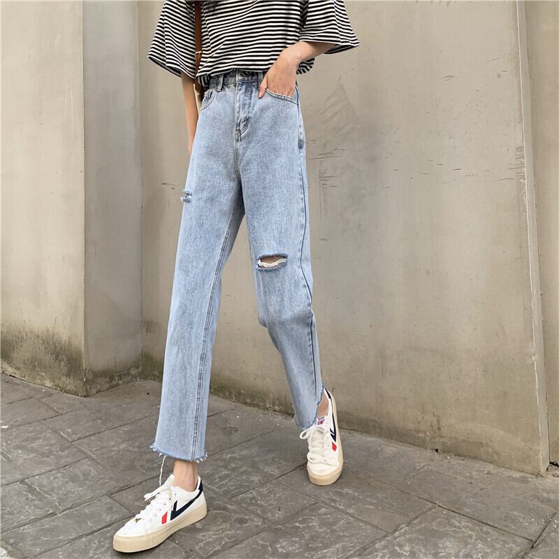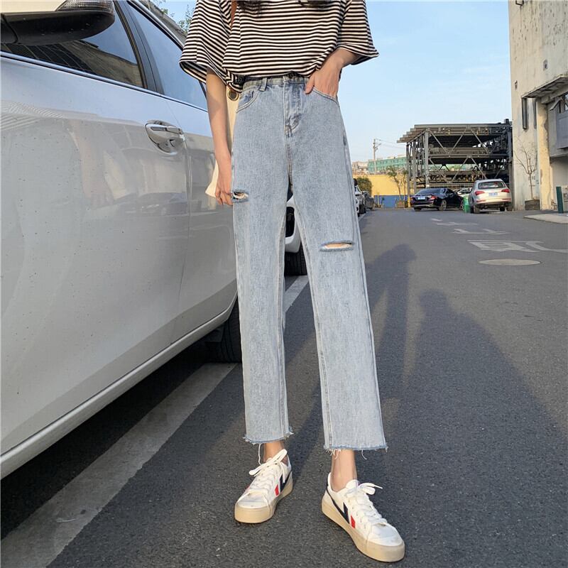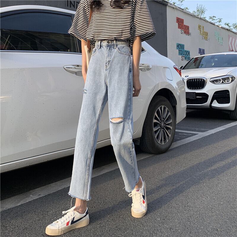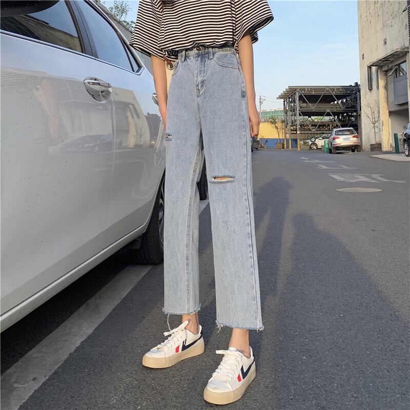 破れたパンツ女性2020年新夏ルーズハイウエストスリムストレート9点パンツ学生カジュアルジーンズトレンド 1号婦人19753499400