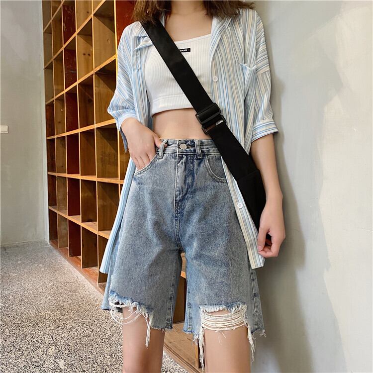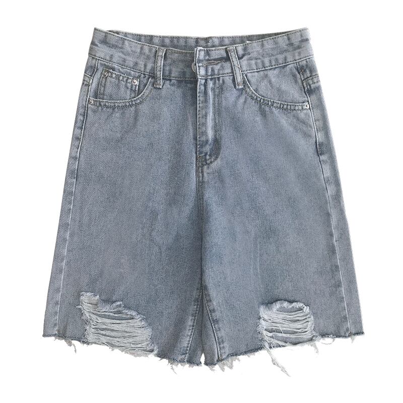 デニムショーツ女性の2020年夏の新バージョンのルーズホール、ハイウエスト、薄くて用途の広いストレートワイドレッグ5ポイントパンツ 1号婦人29207372022