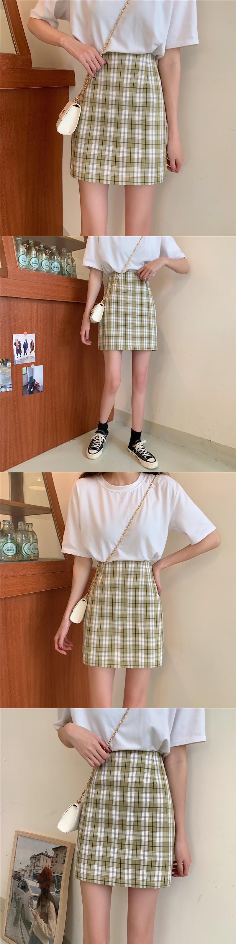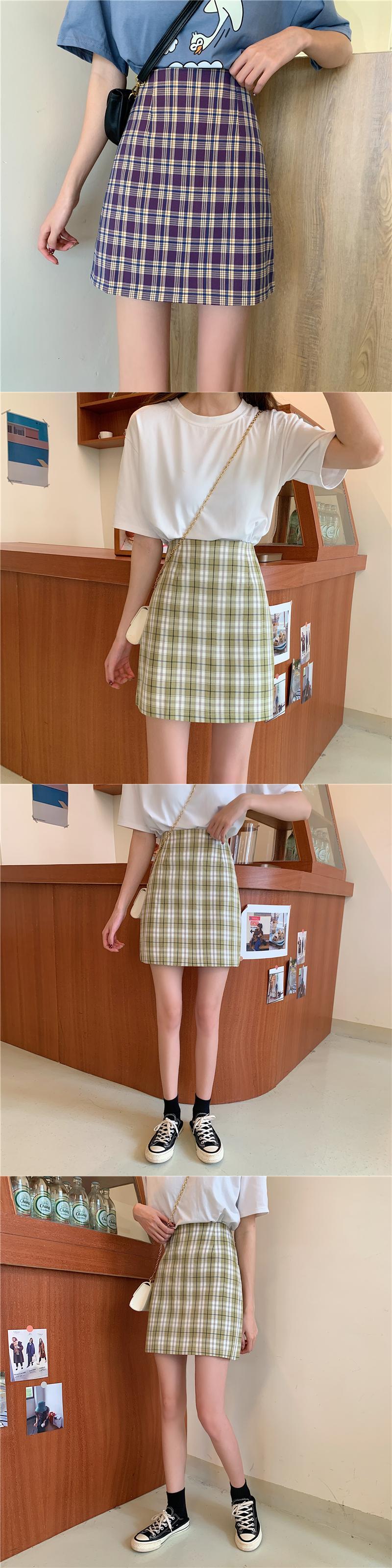 ショートスカートハーフレングススカート女性2020年夏ワイルドカレッジスタイルハイウエストスリムチェック柄スカートAラインスカート新バージョン 1号婦人95765894482