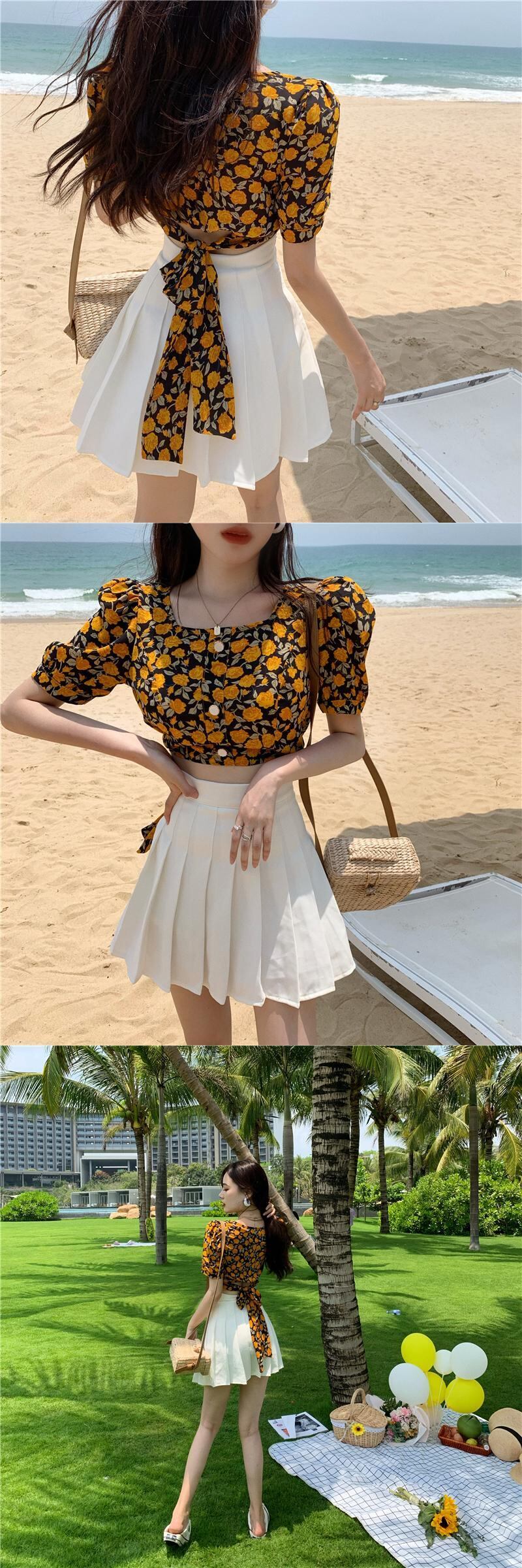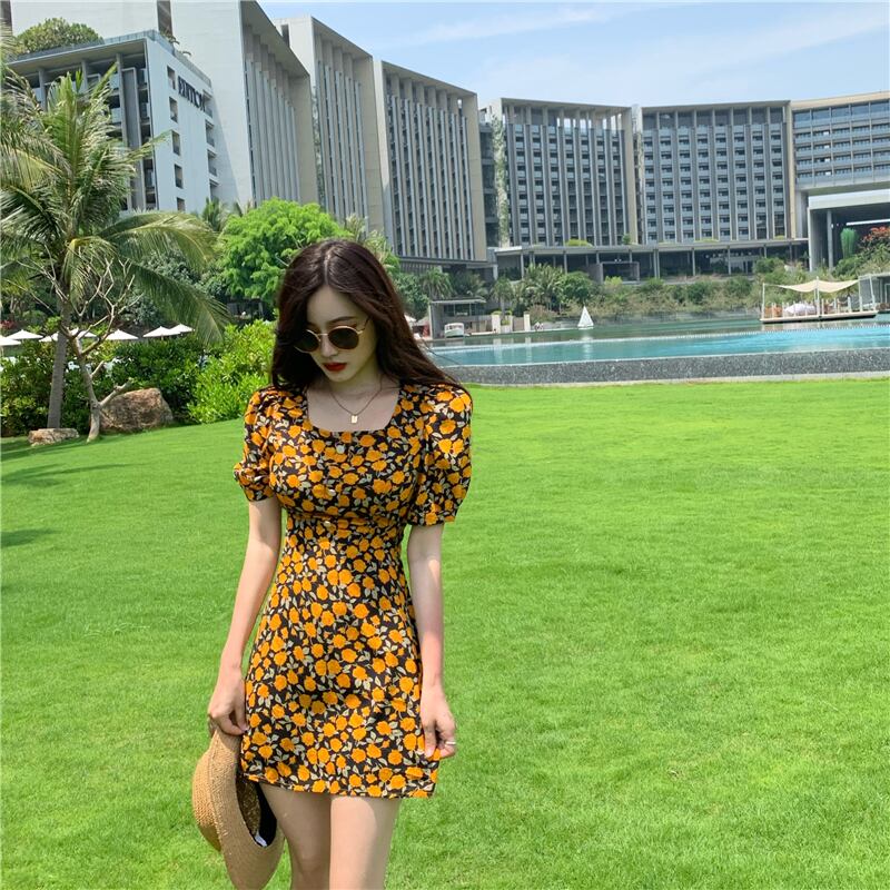 ウエストの薄いドレスの女性の2020年夏の新しい半袖フローラルスカート気質ハイウエストAラインスカートを示すように注意してください 1号婦人78015445327