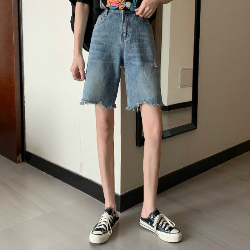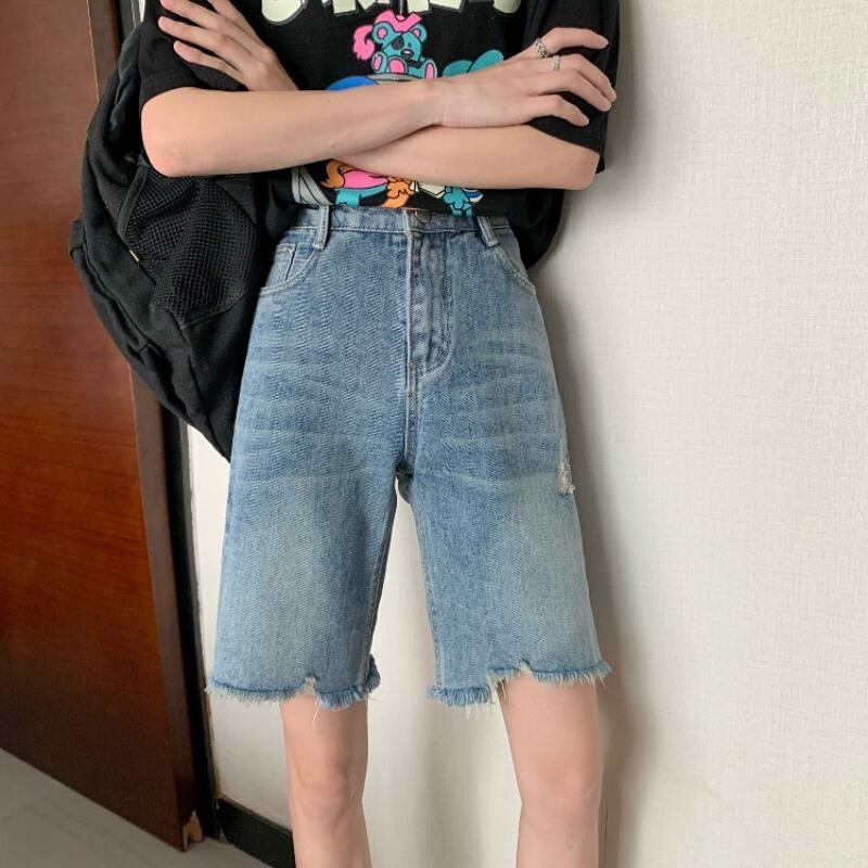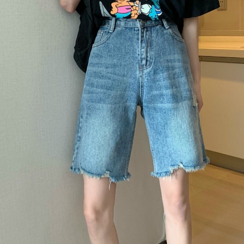 -ウエストジーンズレディース2020年夏新しいルーズで用途の広いストレートワイドレッグショーツ5ポイントヒョナスタイルパンツトレンド 1号婦人32519037631