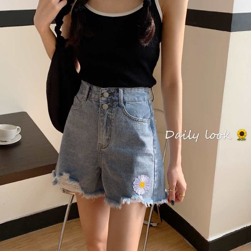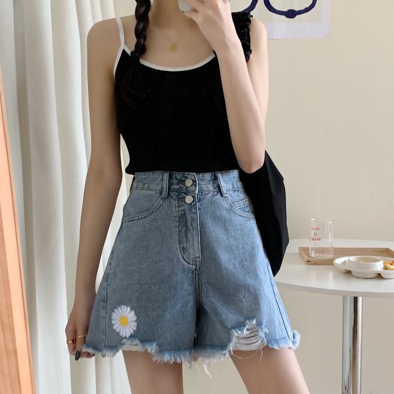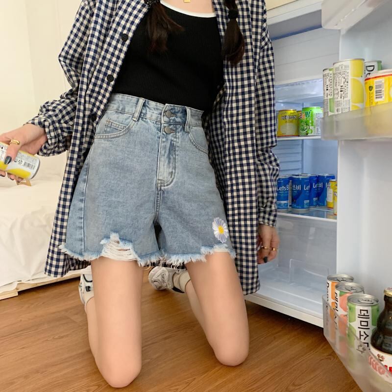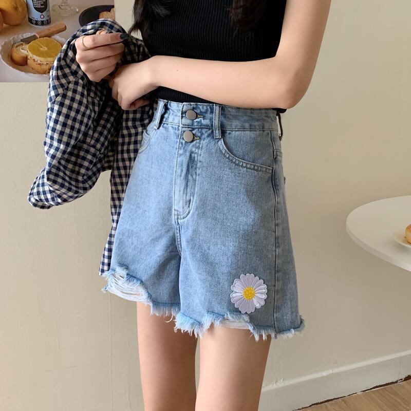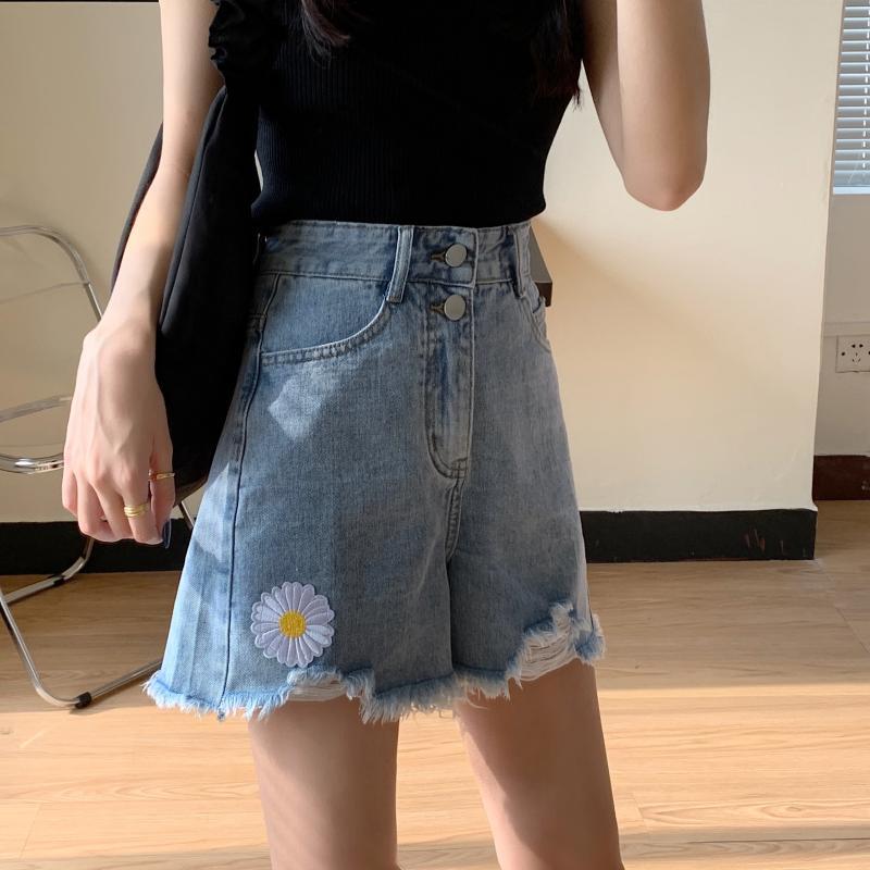 デイジーデニムショーツレディース2020年夏新バージョンのホールハイウエストストレートルーズワイドレッグパンツトレンド 1号婦人8203209742