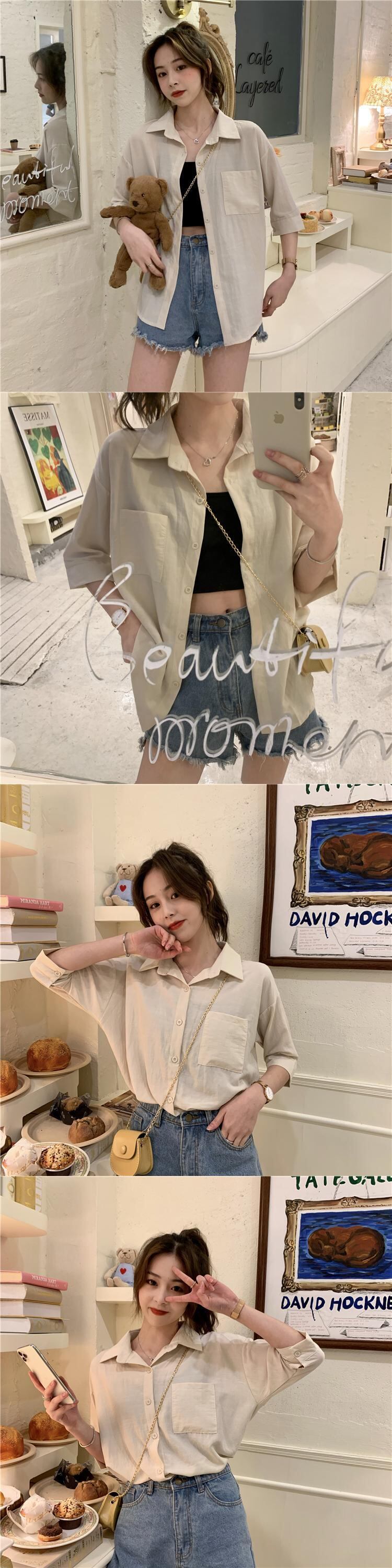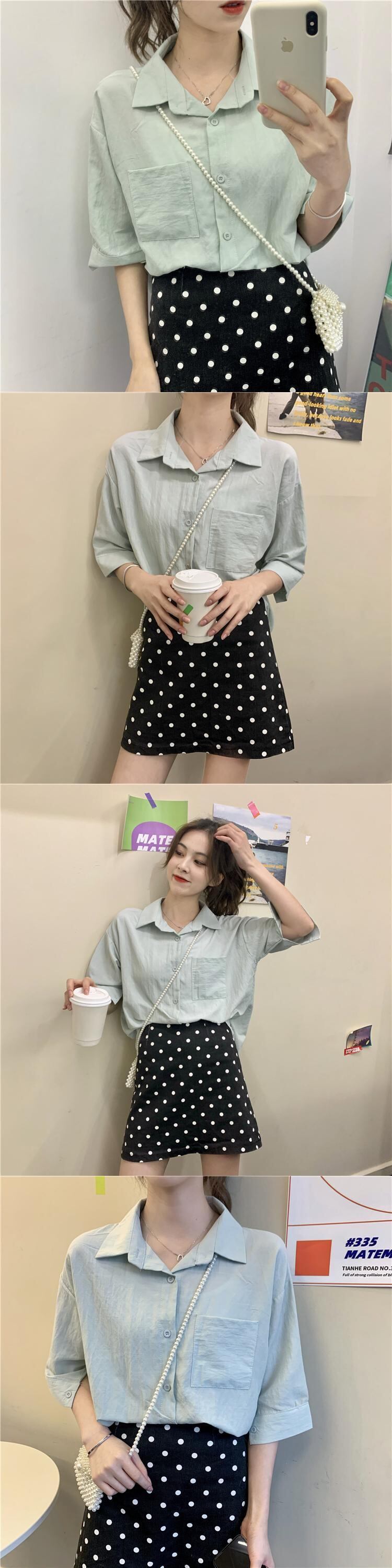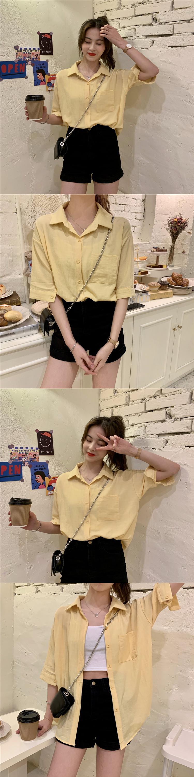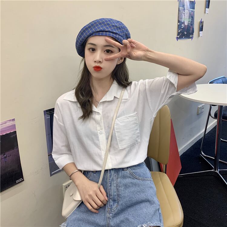 オールマッチサマーPOLOカラーレディースシャツ新2020レトロ香港フレーバーホワイトシャツカジュアル半袖トップス 1号婦人38479723433