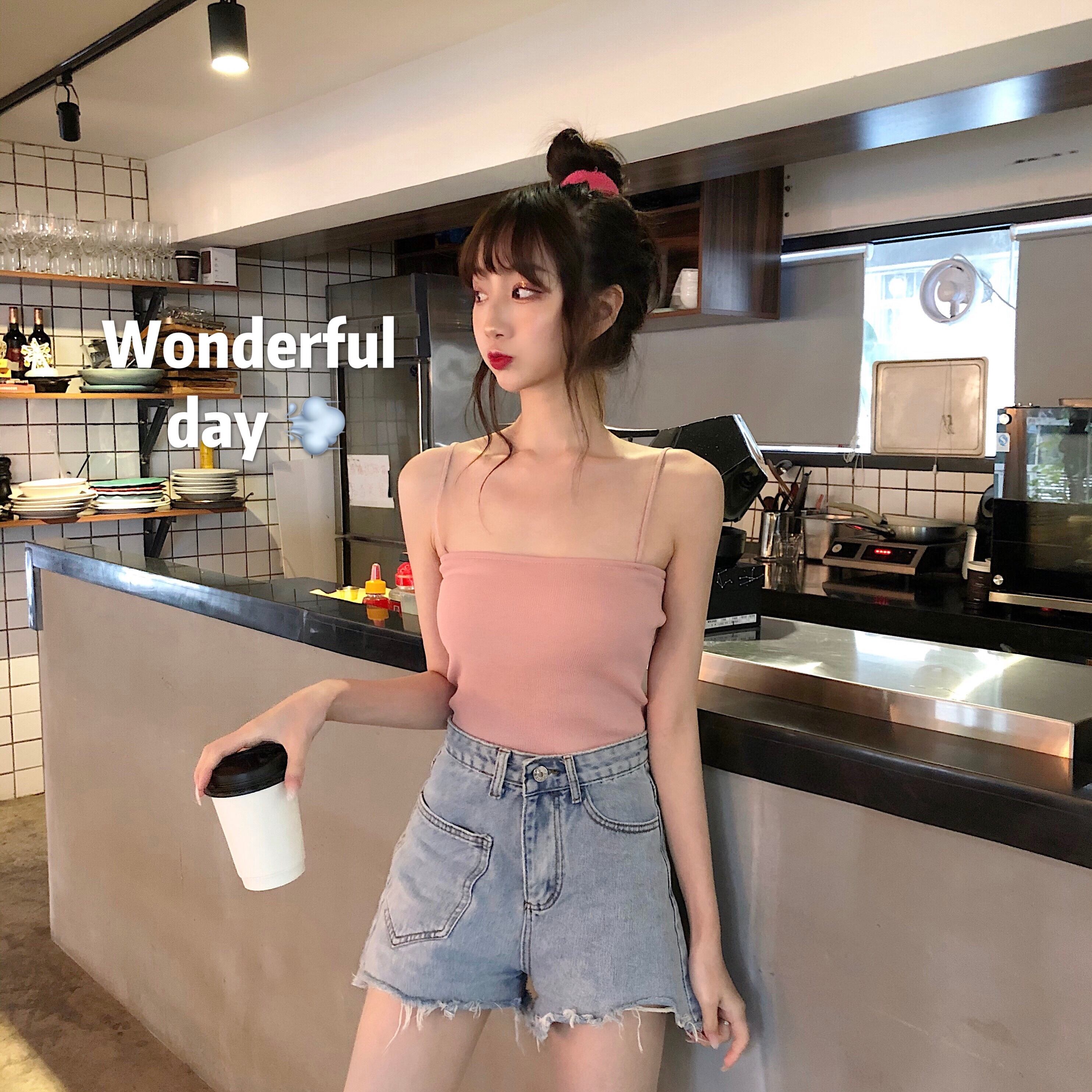 ショートトップの女性の2020年夏の新しい白いアウターウェア美しい背中の小さなサスペンダー、ノースリーブのニットベストボトミングシャツ 1号婦人14348162835