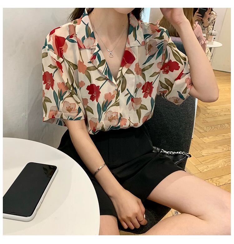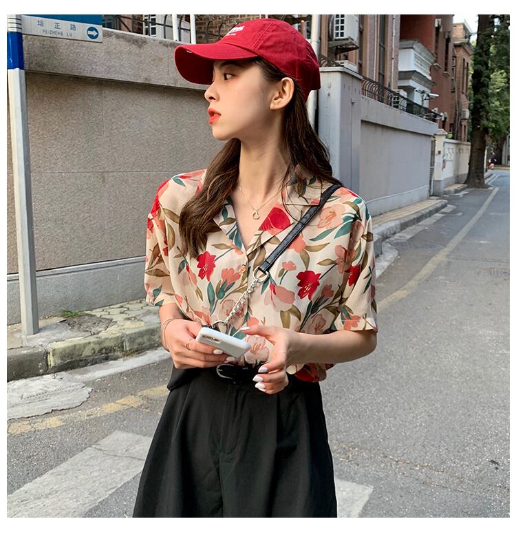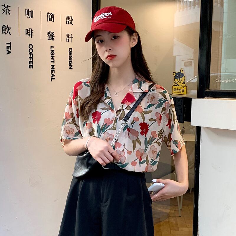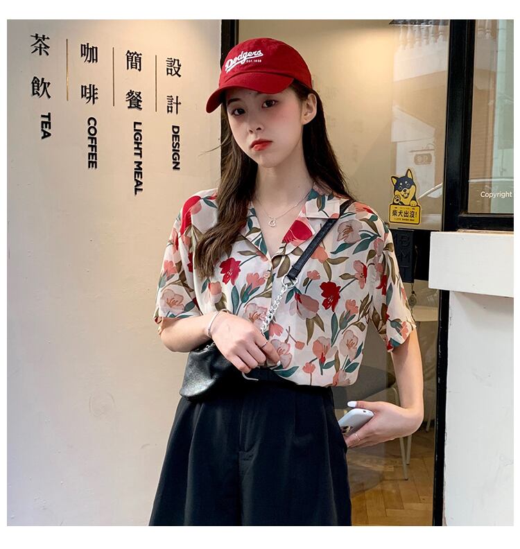 シャツデザインセンスニッチフローラルシャツ新2020夏半袖スーツ襟カーディガントップス 1号婦人22645309006