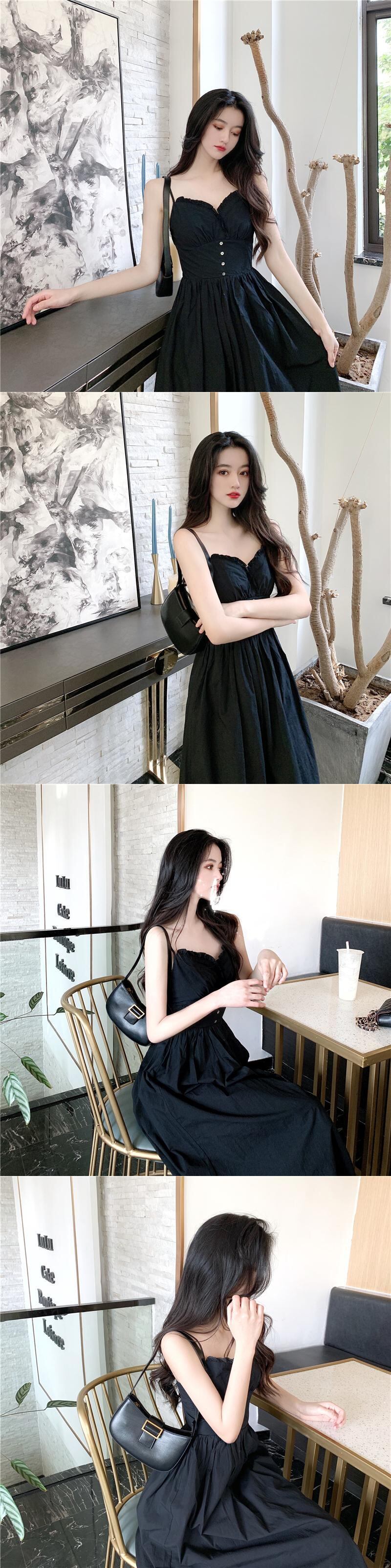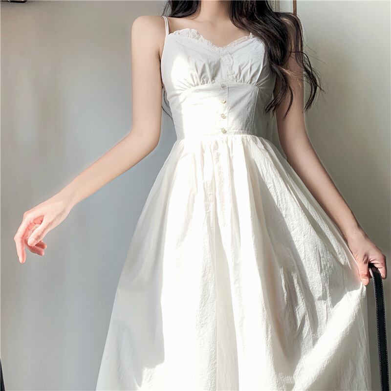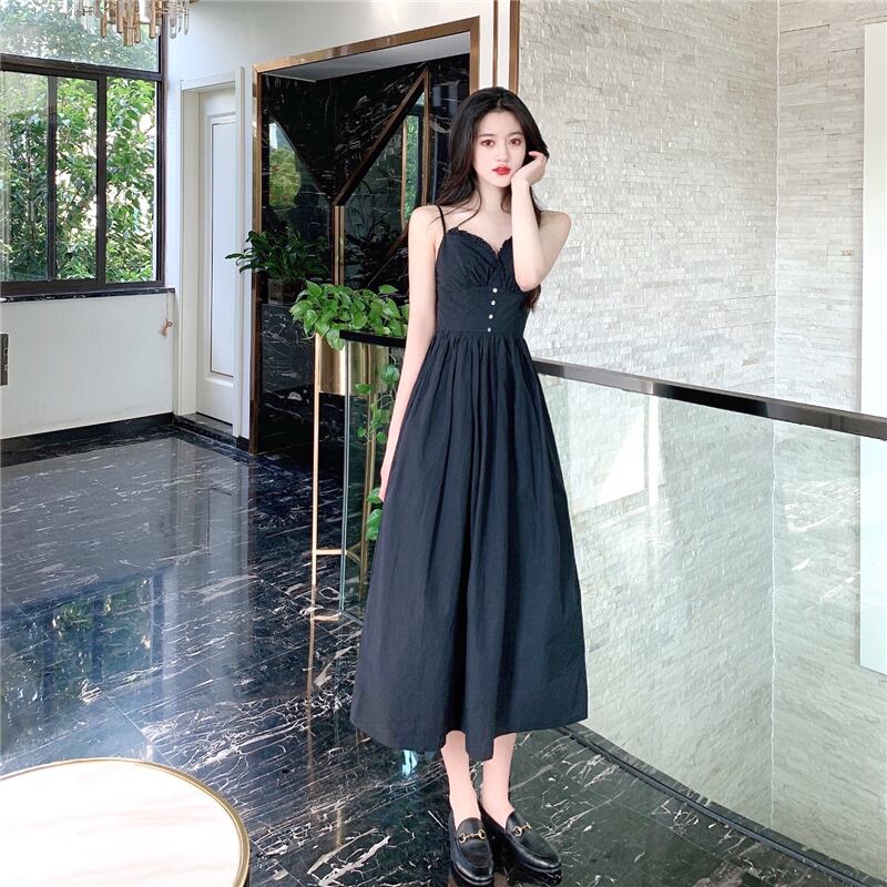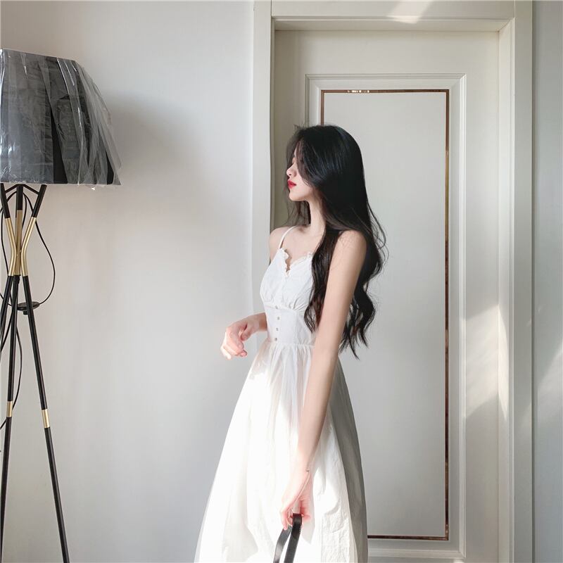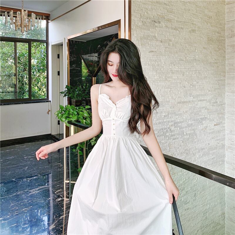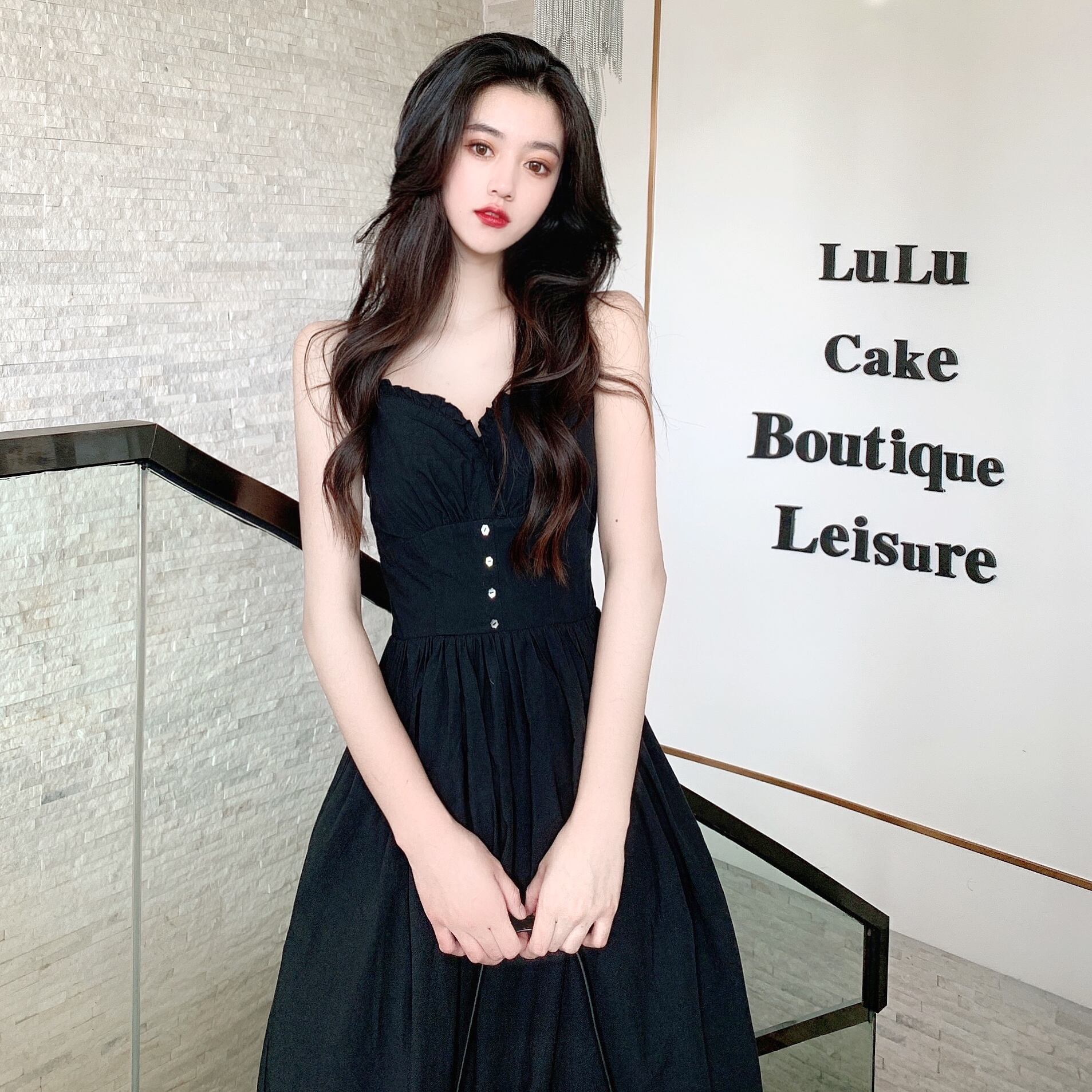 ガールフレンドドレス2020夏ミドル丈スカート気質ウエストフレンチドレス女神ファンネットレッドサスペンダースカート 1号婦人12409106935