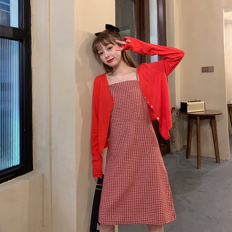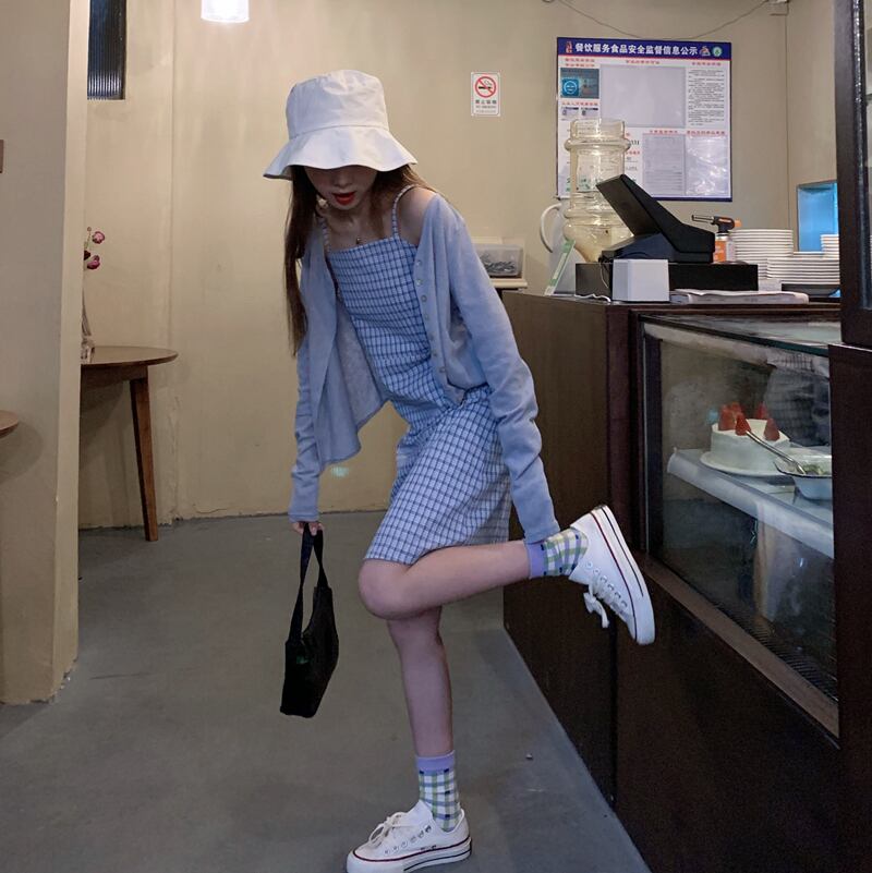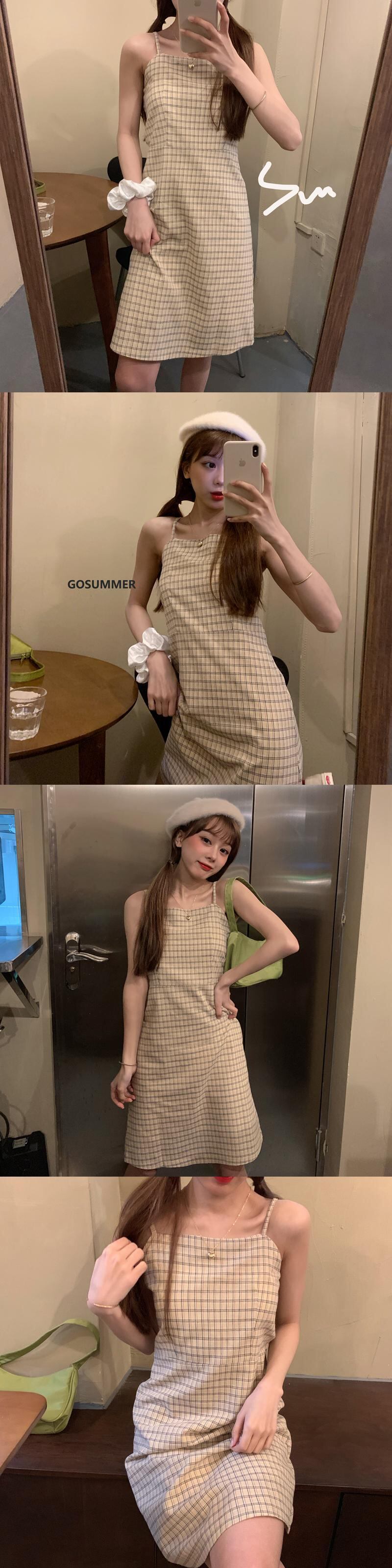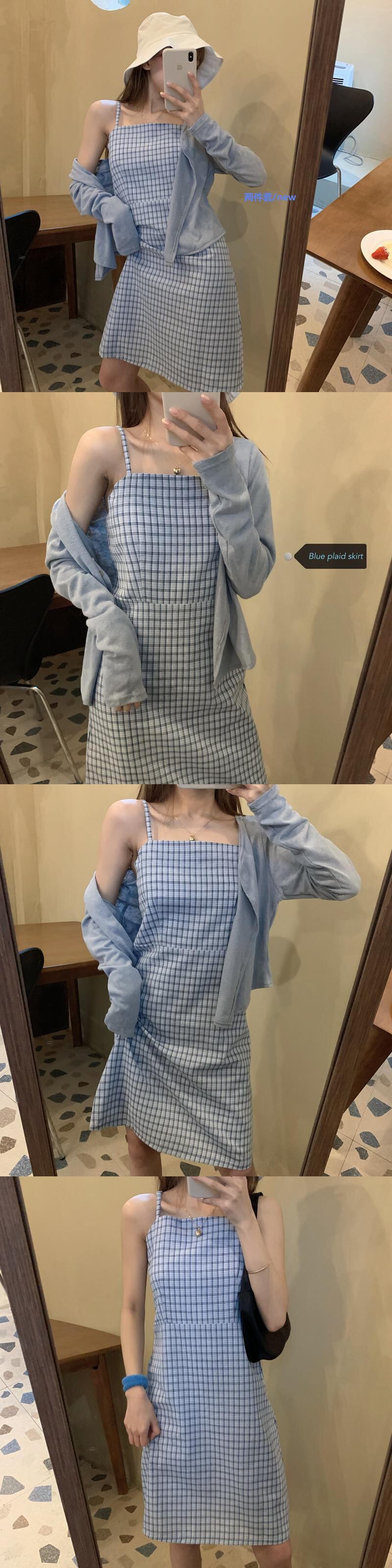 塩と甘いフレンチサスペンダースカートツーピーススーツ2020新しい夏の気質ウエストスリミングチェック柄ドレス女性 1号婦人35166290581