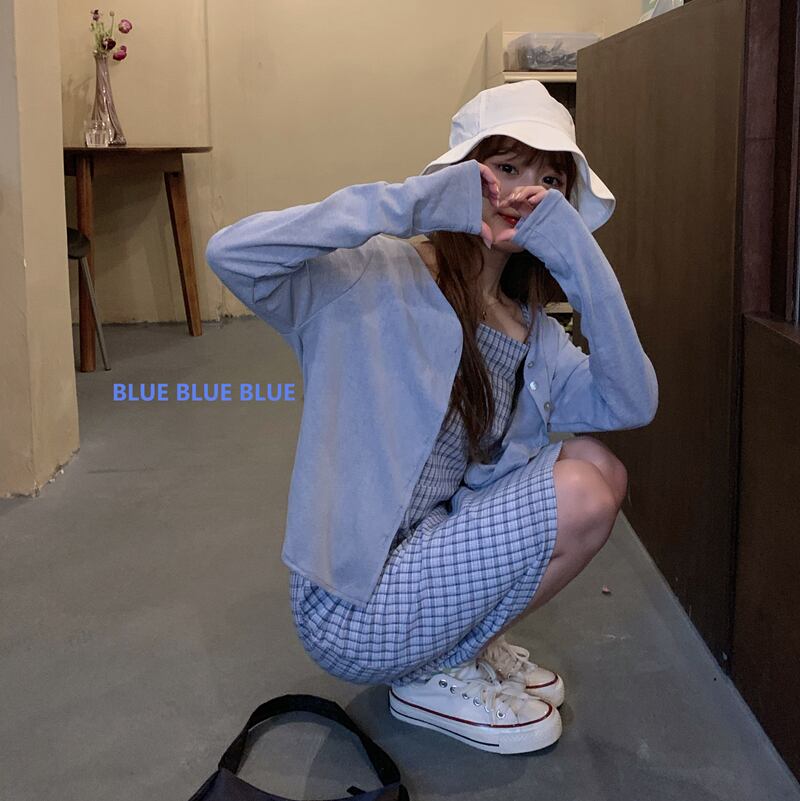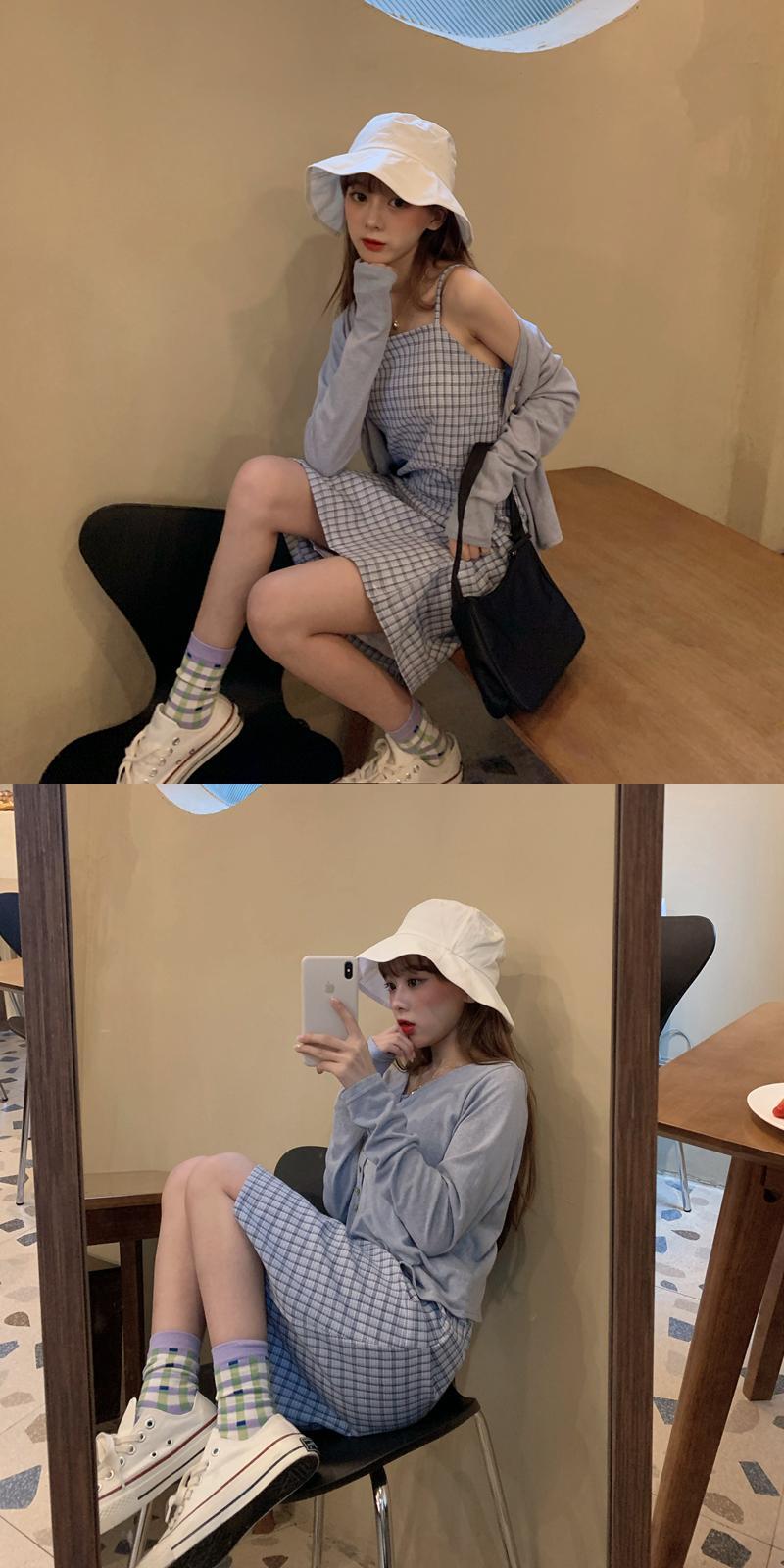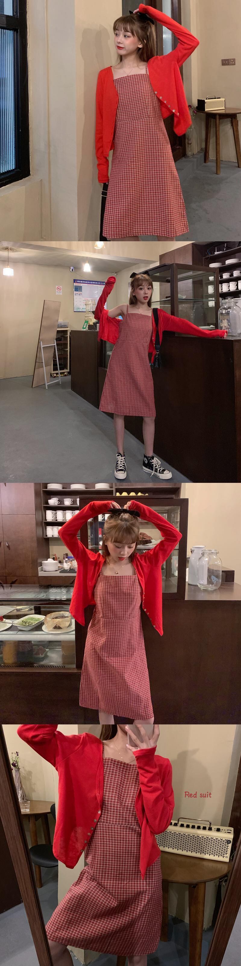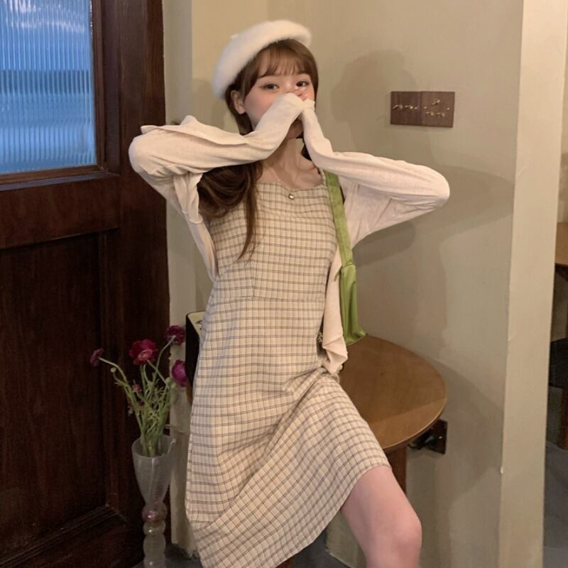 塩と甘いフレンチサスペンダースカートツーピーススーツ2020新しい夏の気質ウエストスリミングチェック柄ドレス女性 1号婦人35166290581