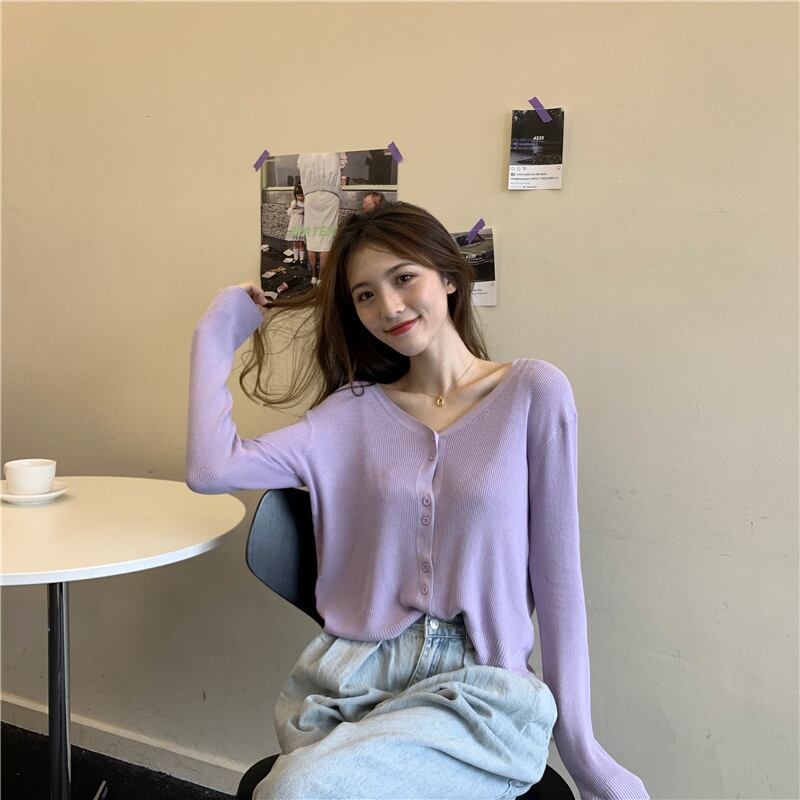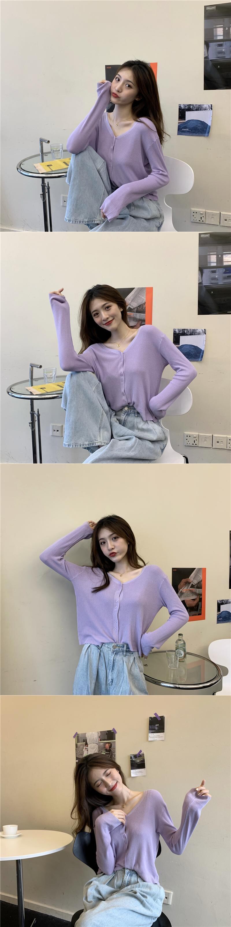 2020年夏の新しいアイスシルクVネックセーター女性の薄い日焼け止めシャツパープルショートカーディガンスモールジャケット 1号婦人97748391924