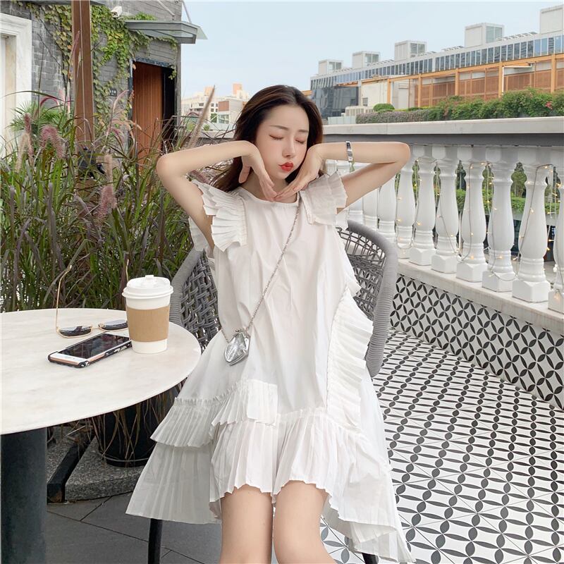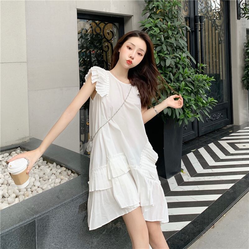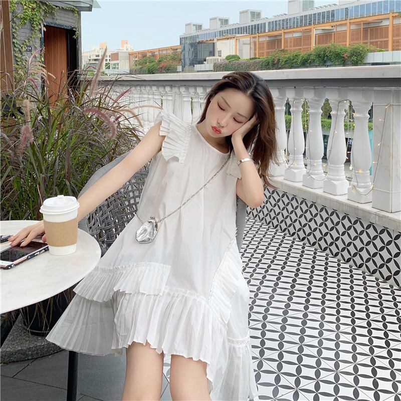 2020年春夏の新しいフランスの不規則なAラインの大きなスカートは薄くて西洋風のノースリーブの白いドレスの女性です 1号婦人67863345184
