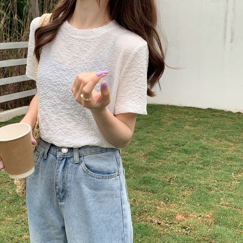 2020年夏の新しいパープルトップ女子学生プリーツ半袖Tシャツネットレッドインスーパーファイヤーボトミングシャツコンピオネート 1号婦人2659608277