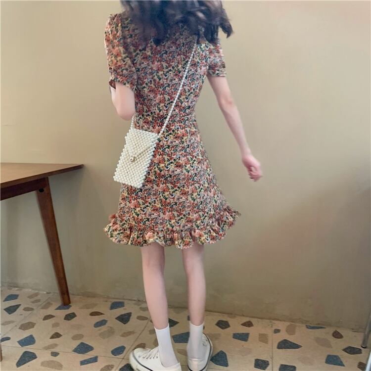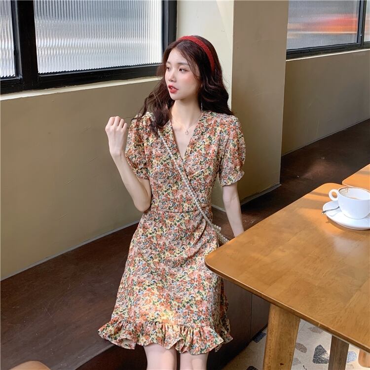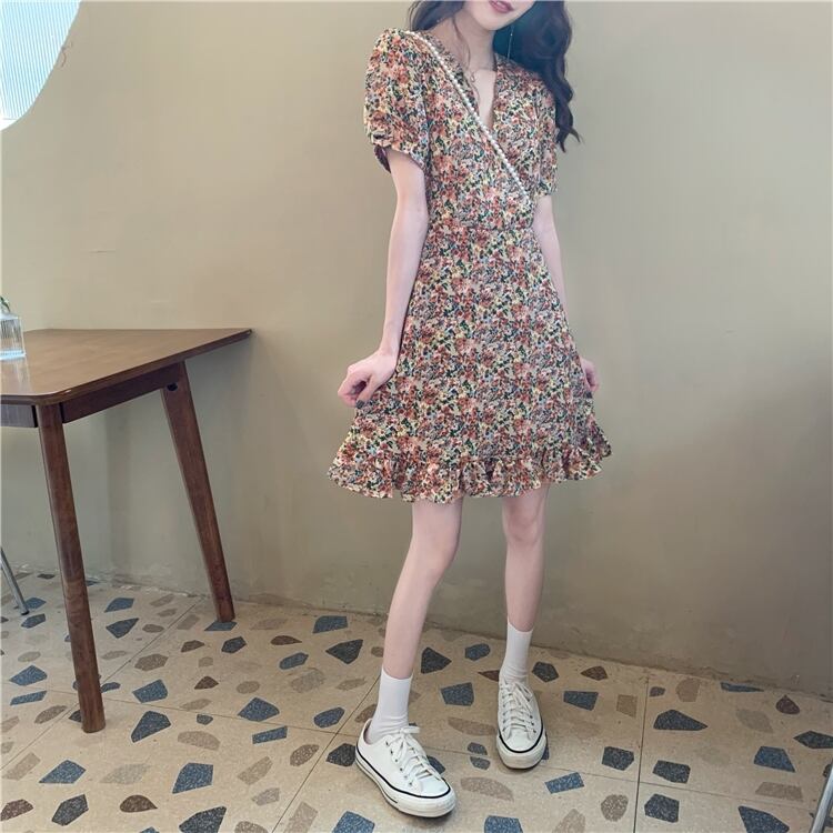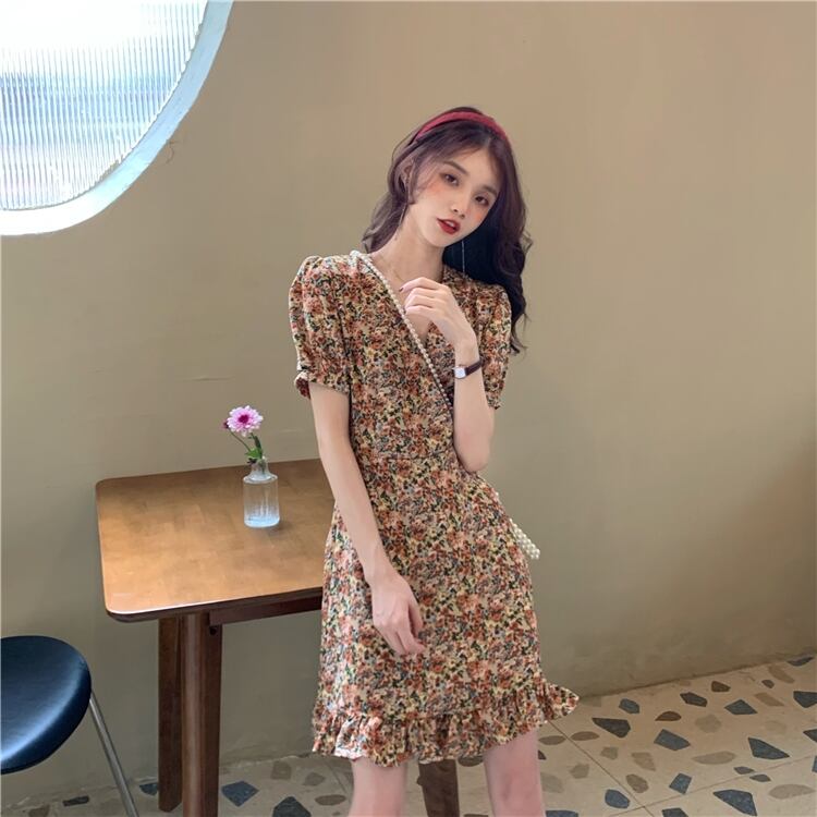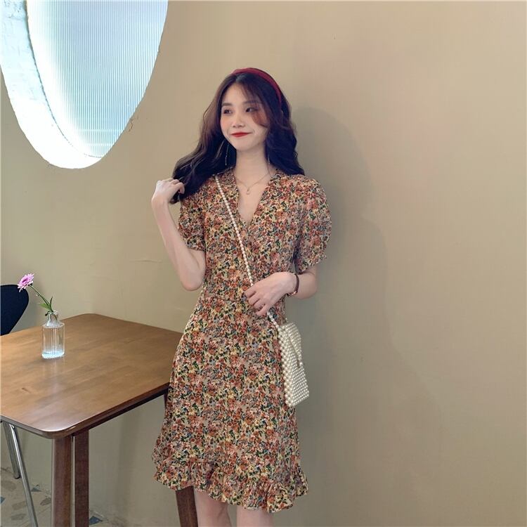 フランスのニッチなドレスの女性2020年の新しい夏の気質半袖Vネックフローラルスカートハイウエストの細いAラインスカート 1号婦人97395146322
