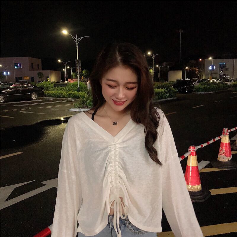 インナージャケットレディース2020年春新バージョンのワイルドドローストリングルーズで薄い長袖日焼け止めTシャツブラウス 1号婦人96222009719
