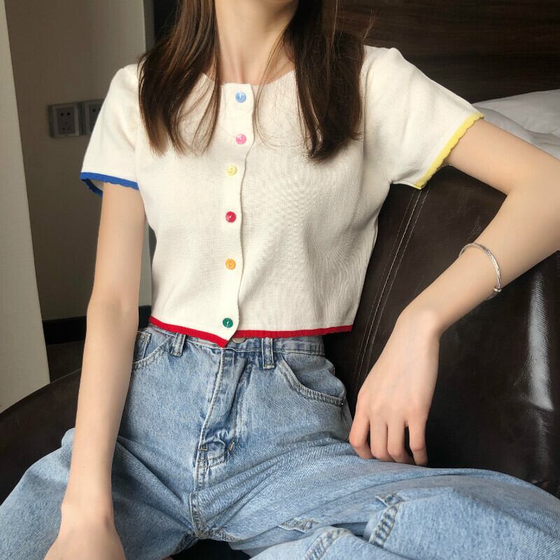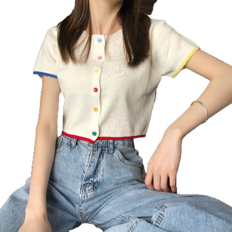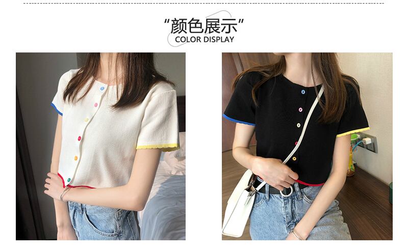 キム・ヒョナ風デザインのオールマッチクロップドトップ2020夏新バージョン、スリム&シンニット半袖Tシャツ 1号婦人61332410809