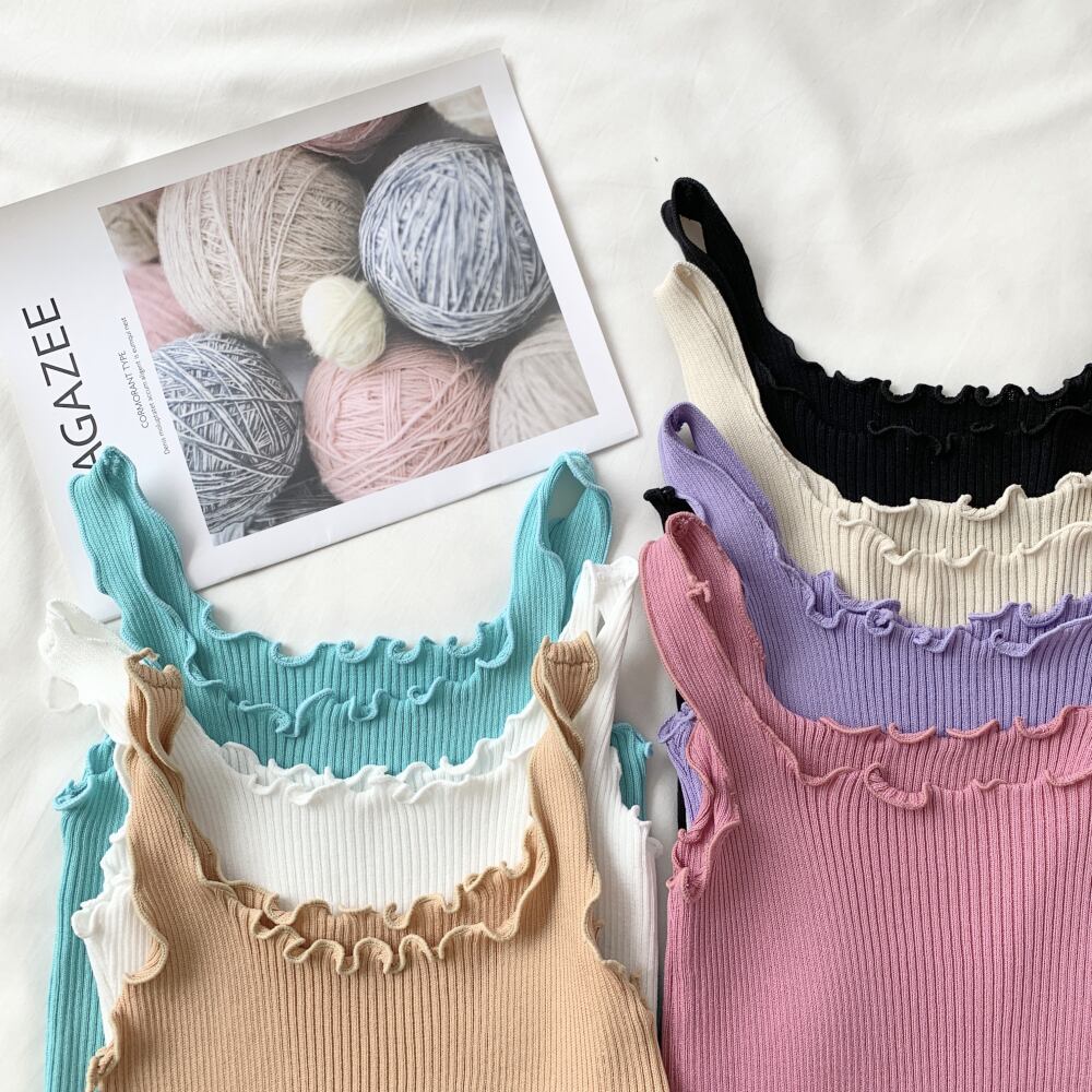スモールキャミソールレディースインナーウェアサマーニュースタイルレディーススタイルウッドイヤーニットボトミングシャツ無地ショートトップ 1号婦人35896459642