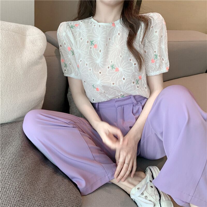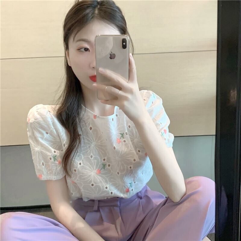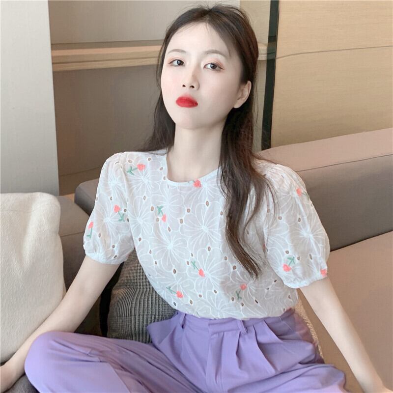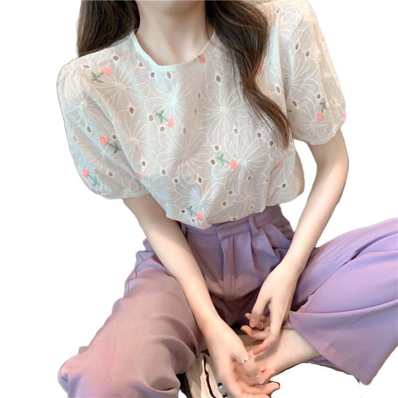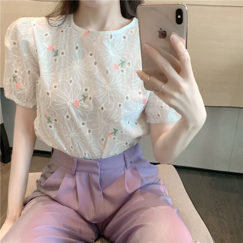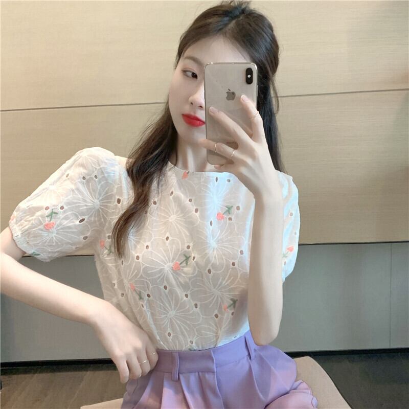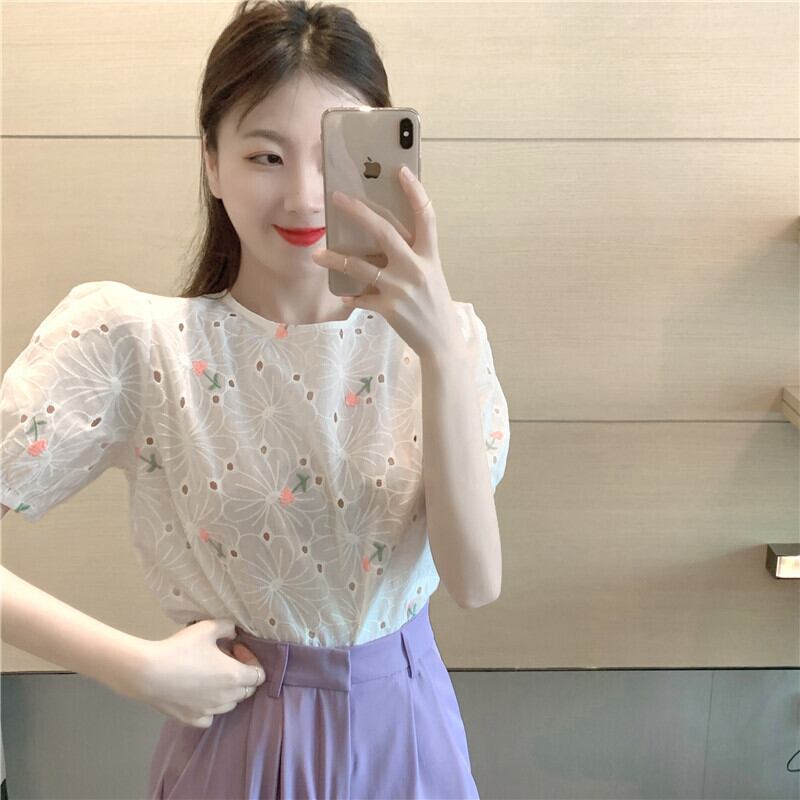 2020年夏の新しい女性の中空刺繡小さな花のシャツ気質半袖薄い白いトップ 1号婦人45443987633