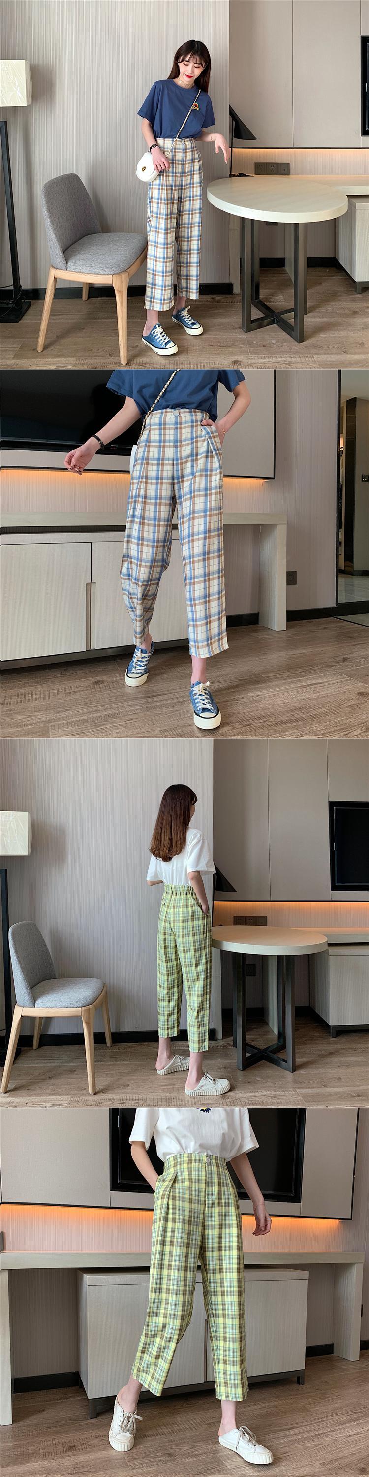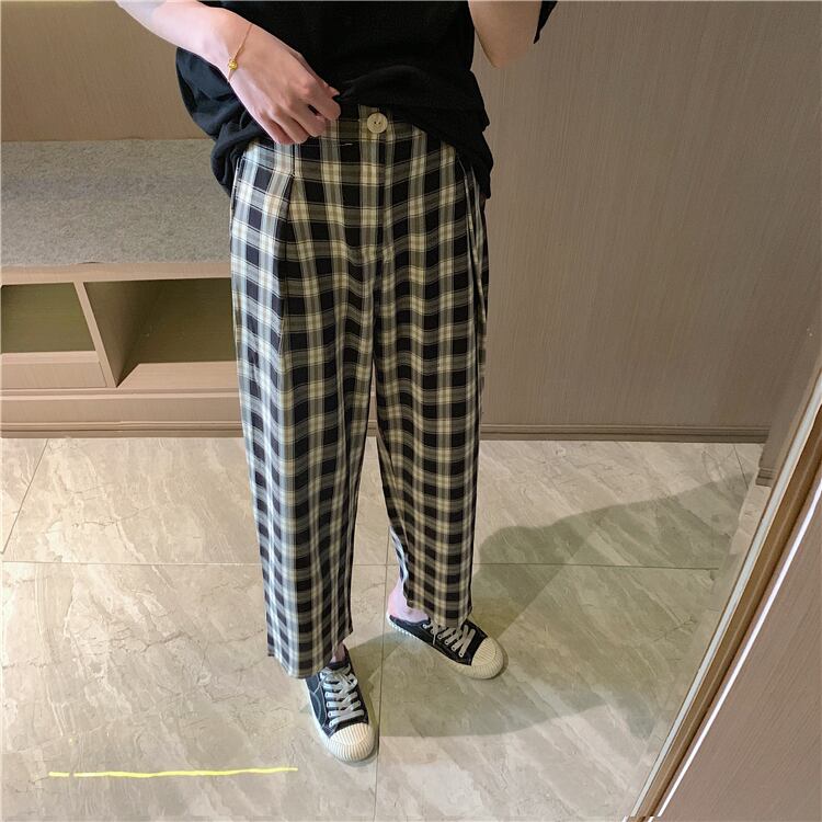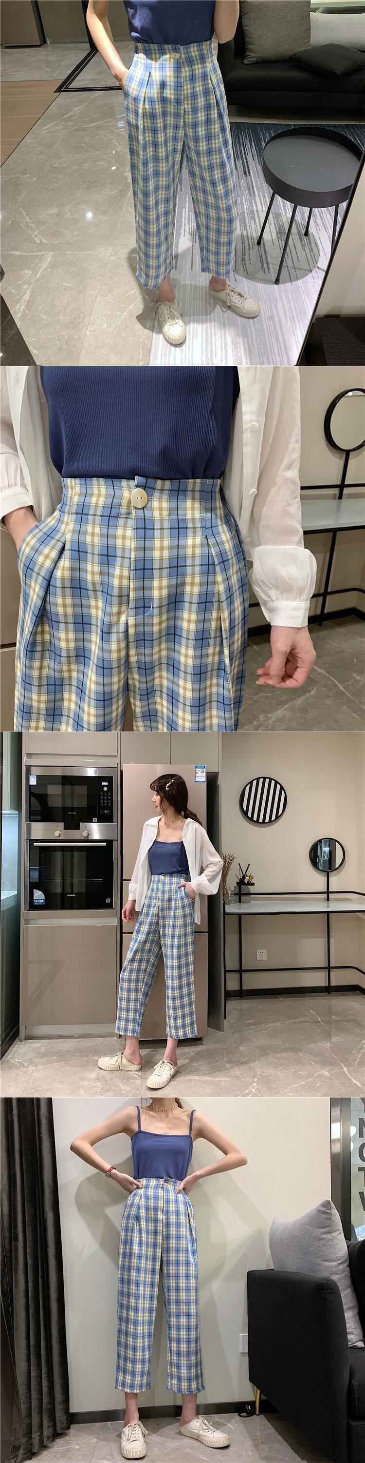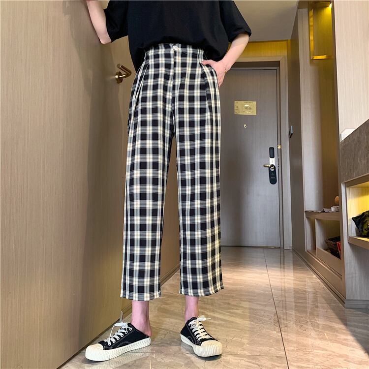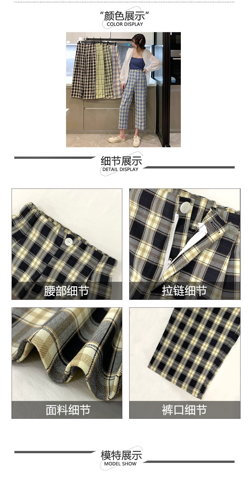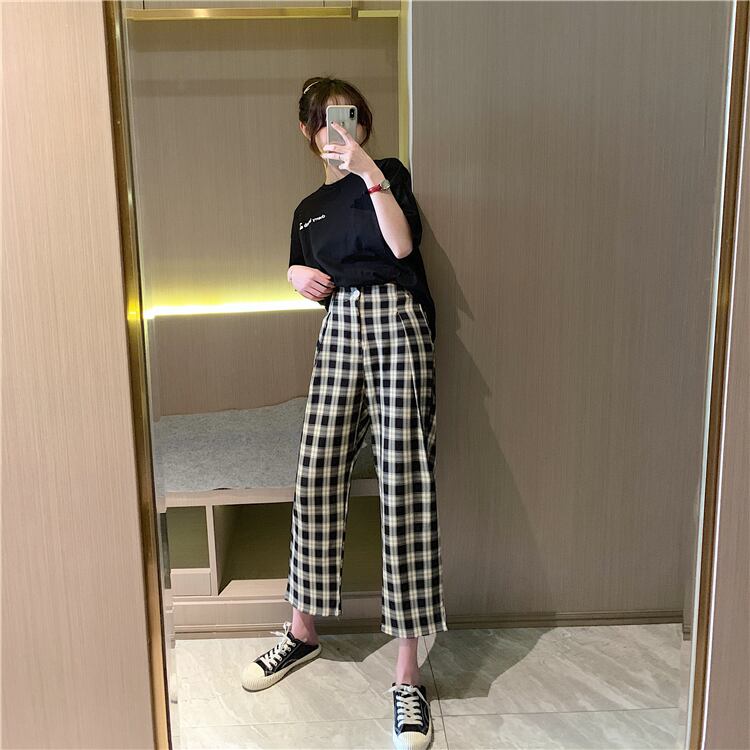 パンツレディース2020年夏新バージョンルーズとシンストレート9ポイントパンツオールマッチハイウエストチェック柄カジュアルパンツトレンド 1号婦人47626460264