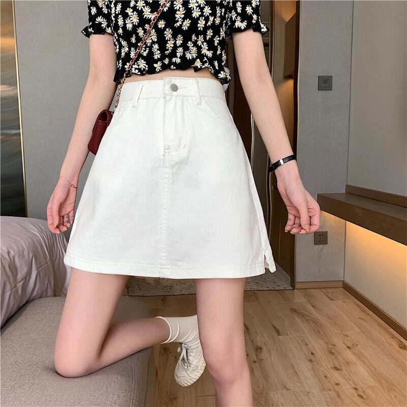 デニムスカート女性2020夏新ハイウエストスリムスプリットAラインスカート学生ホワイトショートスカートトレンド 1号婦人60478501401