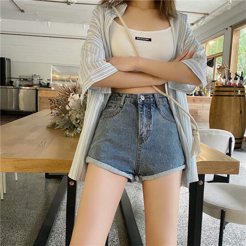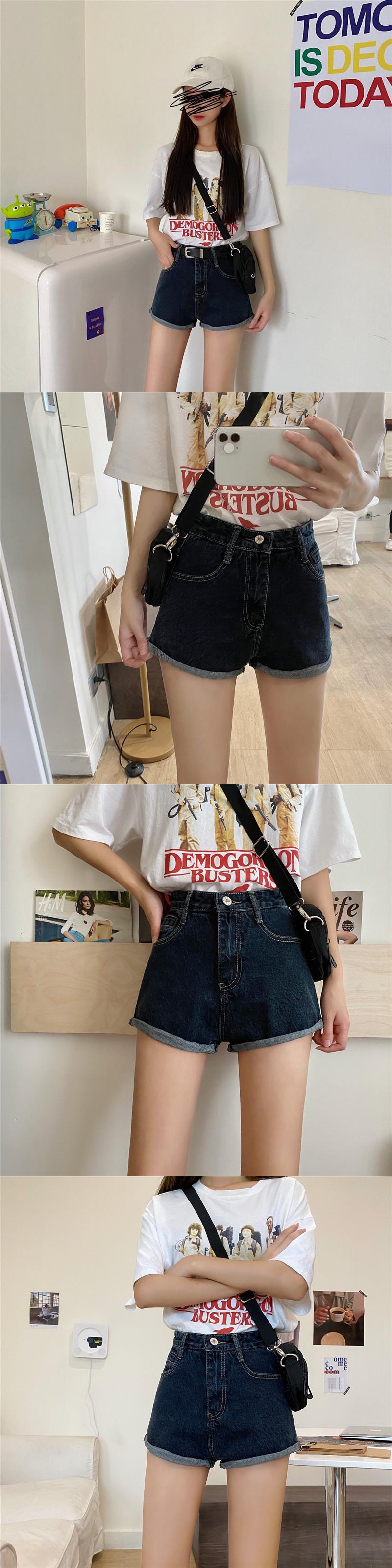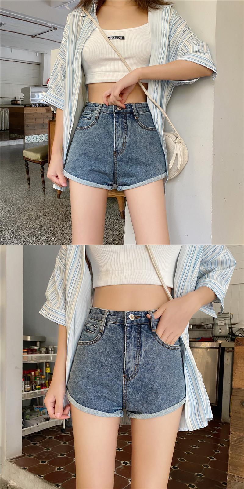 ウエストロールジーンズレディースショーツ2020年夏新入生オールマッチワイドレッグパンツトレンド 1号婦人43883893979