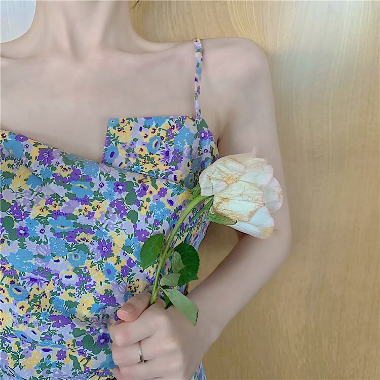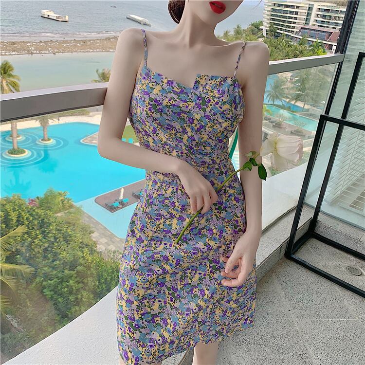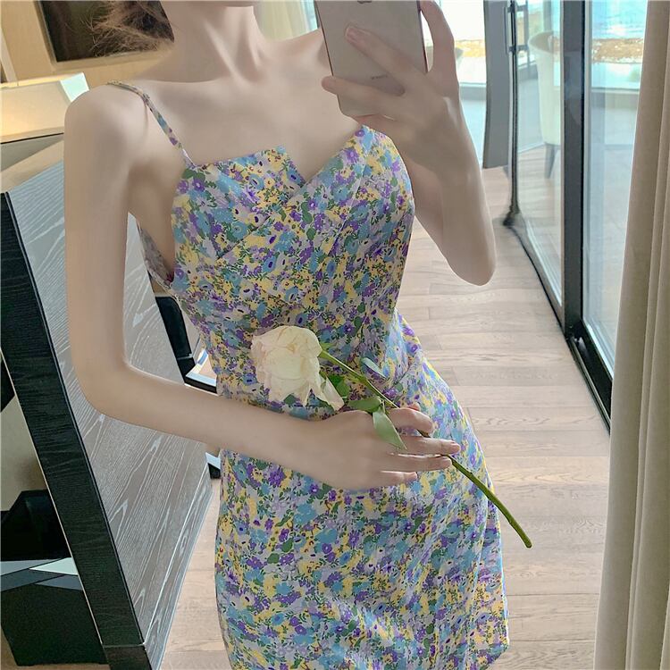 セクシーなスリングドレス2020新しい女性の夏のスリムで薄い花柄のスカートに注意してくださいAラインの油絵のスカート 1号婦人26610807169