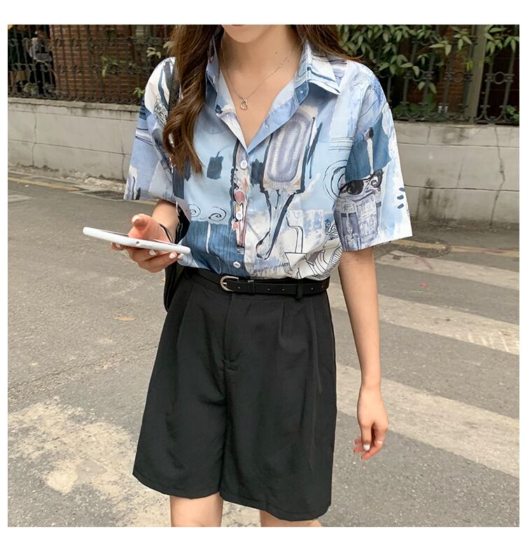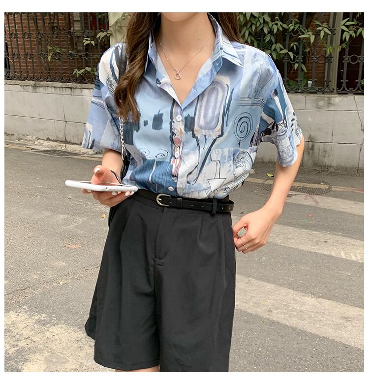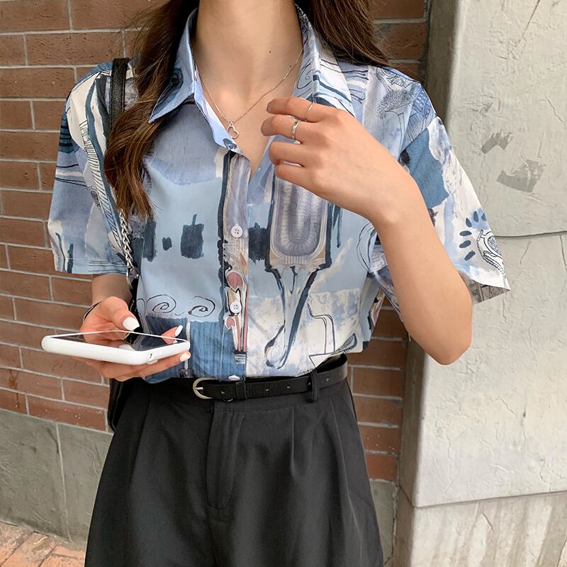 プリントシャツレディース新しい2020年春夏レトロ香港スタイルデザインニッチルーズ半袖ミドル丈ブラウス 1号婦人61565004594